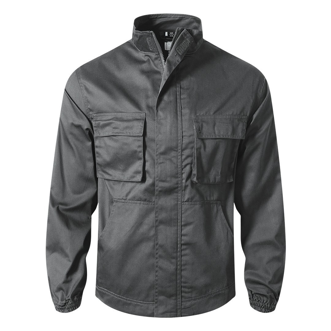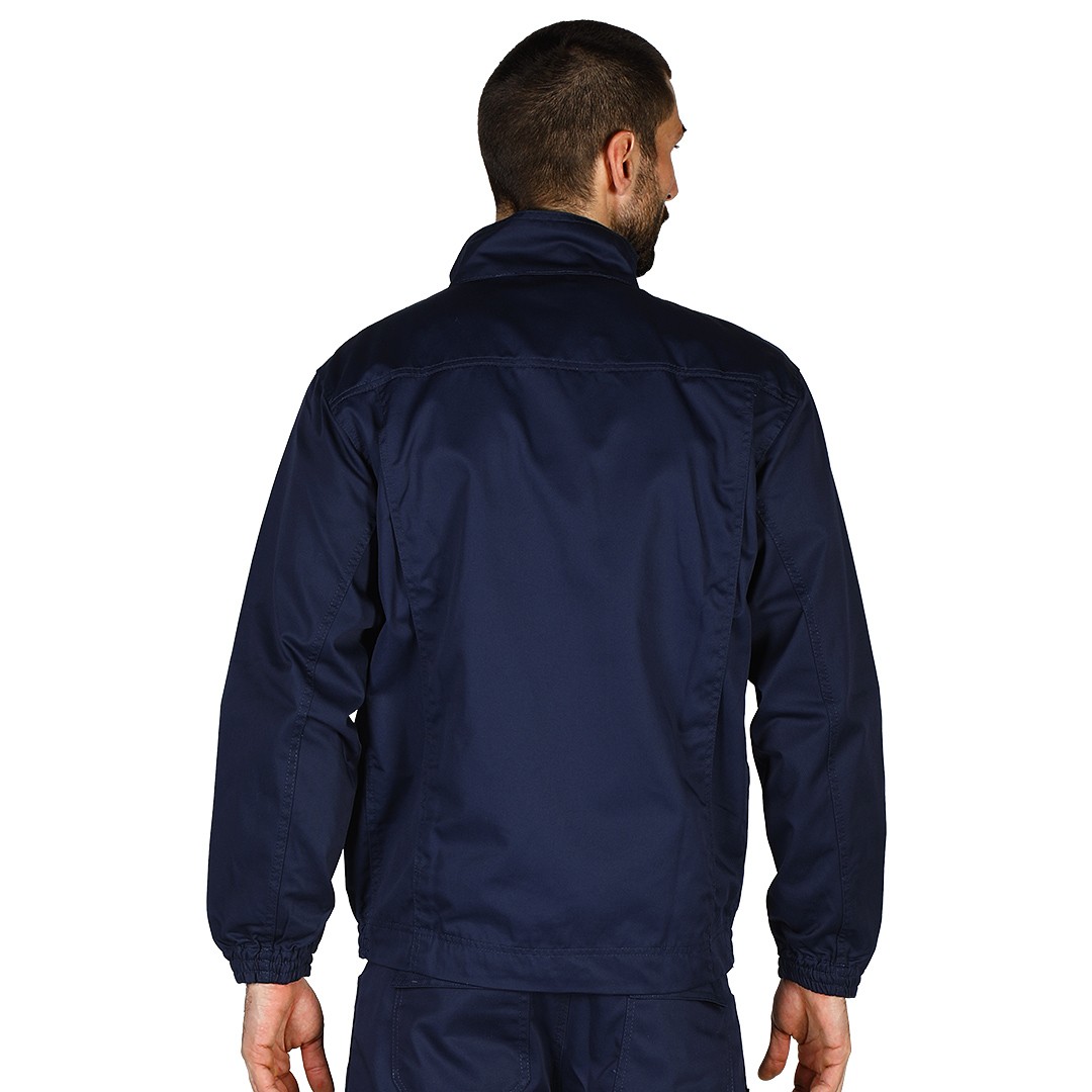 Bluza, 240g/m2, keper, visoka kragna, preklop sa čičak trakama preko rajsferšlusa, dva džepa na grudima, dva prednja džepa, dve falte pozadi za dodatnu udobnost, elastične ranfle oko rukava i na dnu, etiketa za lične podatke unutra