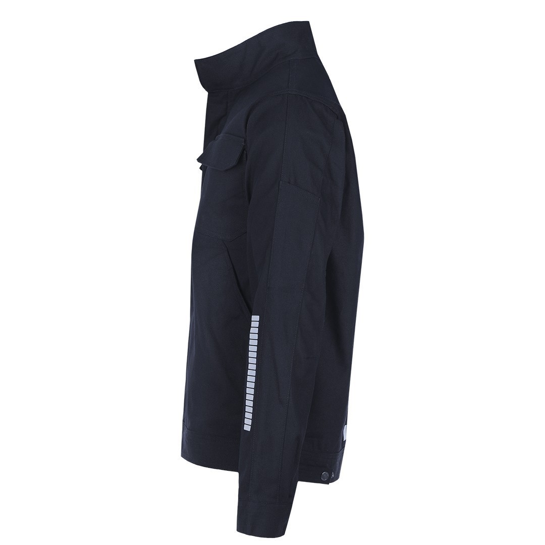 Bluza od kepera sa elastinom, 295 g/m², visoka kragna, preklop sa čičak trakama preko rajsferšlusa, podesiva širina rukava i pojasa. Dva džepa na grudima i dva prednja džepa. Reflektivna štampa na rukavima i leđima, etiketa za lične podatke sa unutrašnje strane. YKK rajsferšlusi.