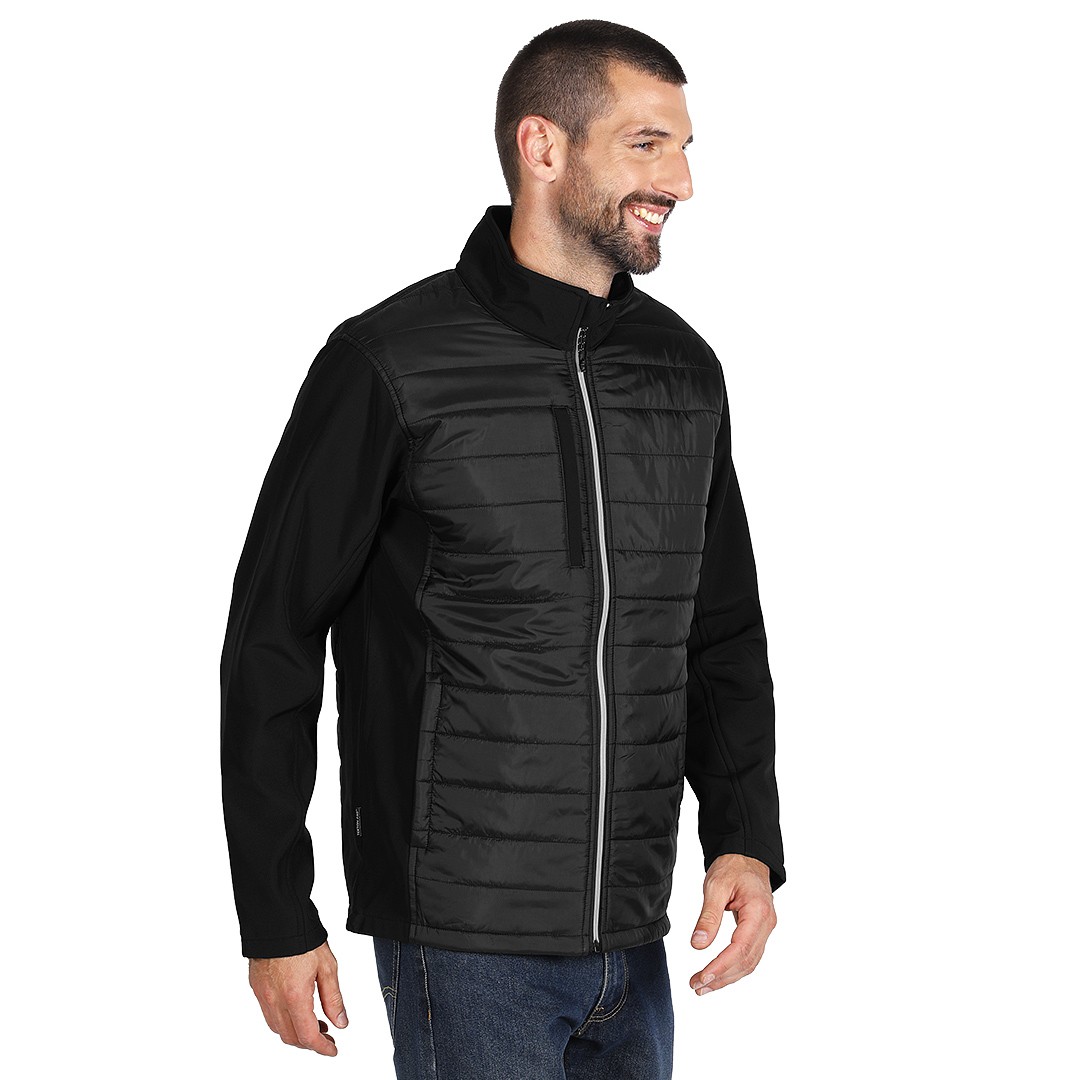 Radna jakna, visoka kragna, elastične ranfle oko rukava, džep na grudima, dva prednja džepa, jedan unutrašnji džep, skriveni unutrašnji rajsferšlus na leđima za lakši pristup prilikom štampanja