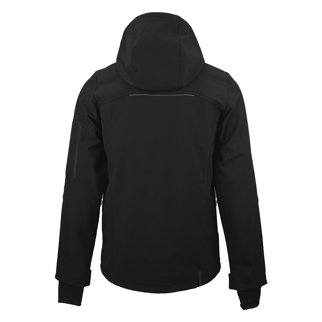 Softshell jakna od fleksibilnog materijala, opremljena ugrađenim grejačima - dva sa prednje strane i jedan pozadi, sa tri nivoa grejanja. Postava od brušenog polara sa termo-reflektujućom postavom u centralnom delu, kapuljača i pojas sa podesivim elastičnim učkurima. Rukavi sa čičak trakom za podešavanje širine na dnu i otvorima za palac. Dva prednja džepa sa rajsferšlusom, džep na grudima i džep na rukavu. YKK vodootporni rajsferšlus pruža dodatnu zaštitu od vlage.
