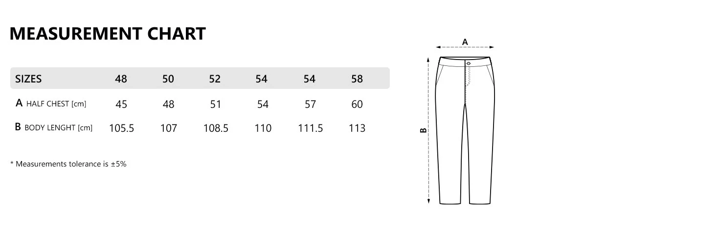 Veličine: S (48), M (50), L (52), XL (54), XXL (56), 3XL (58) Tkanina: 4 - way stretch poliester, 190 g/m2 Sastav: 92% poliester, 8% elastin Pakovanje: 20/1 Preporučena štampa: vez, sito, preslikač