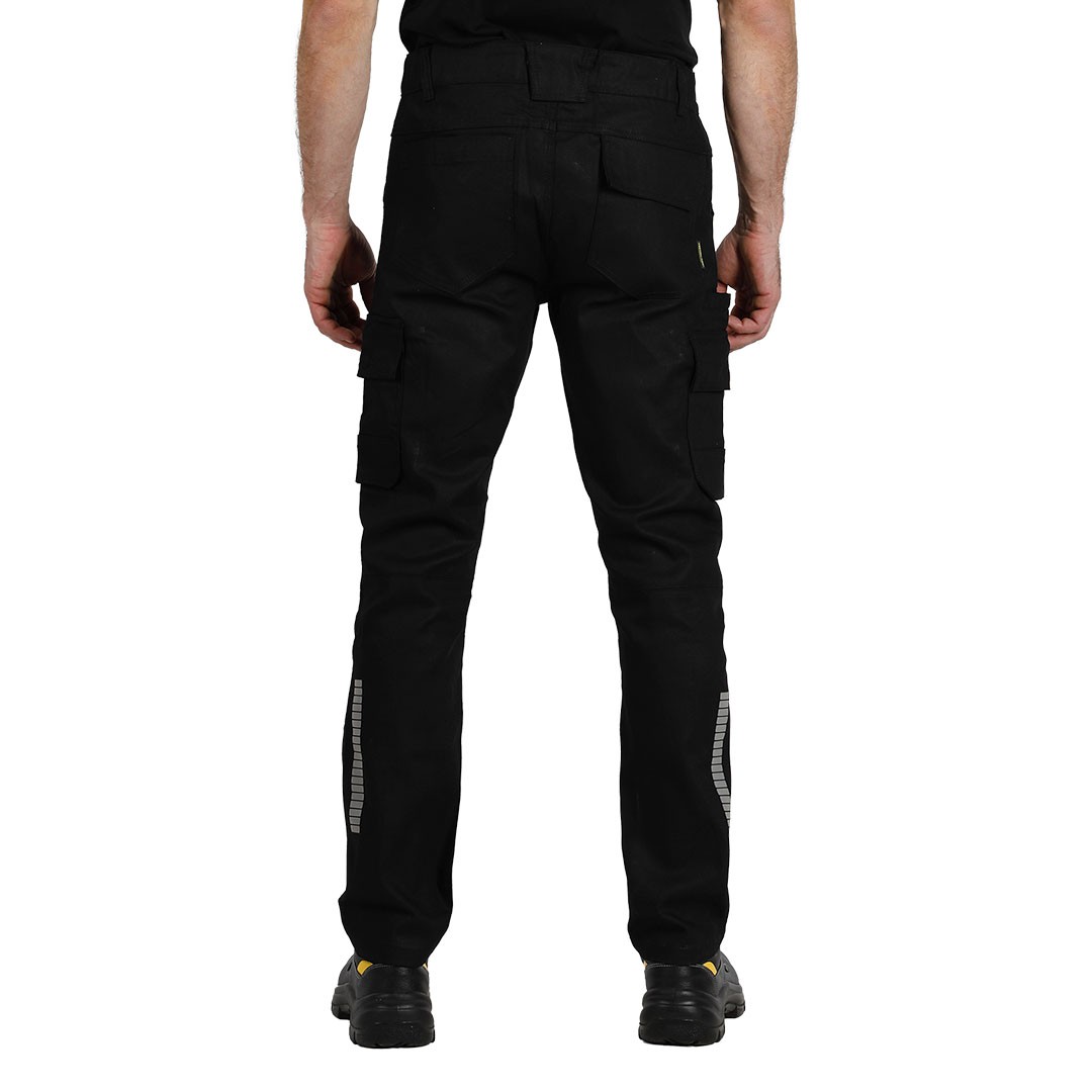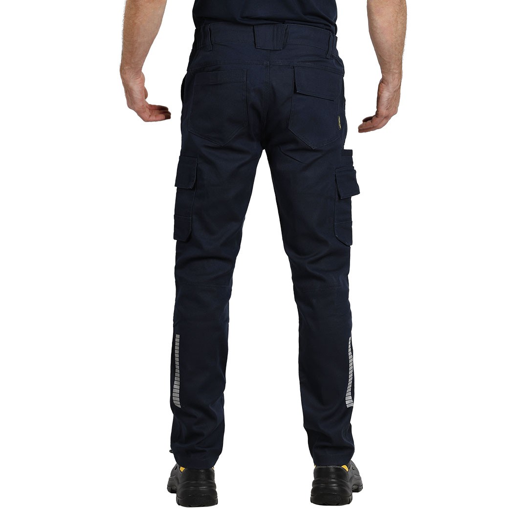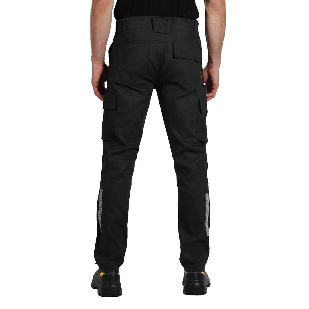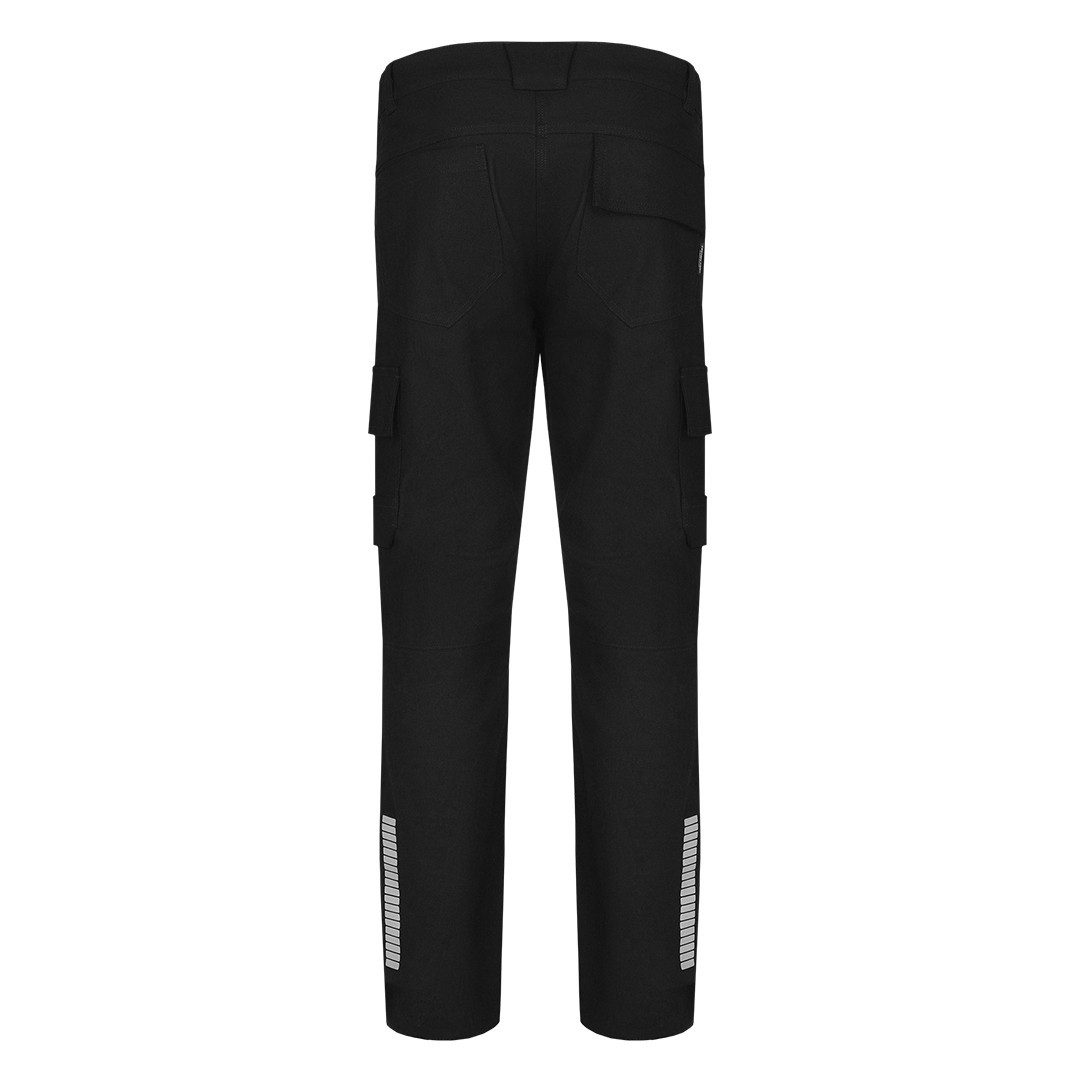 Pantalone, 295 g/m2, keper, dva prednja džepa, dva džepa pozadi i dva sa strane, d-prsten sa prednje strane za kačenje alata, prostor za štitnike za kolena i reflektivna štampa na nogavicama.