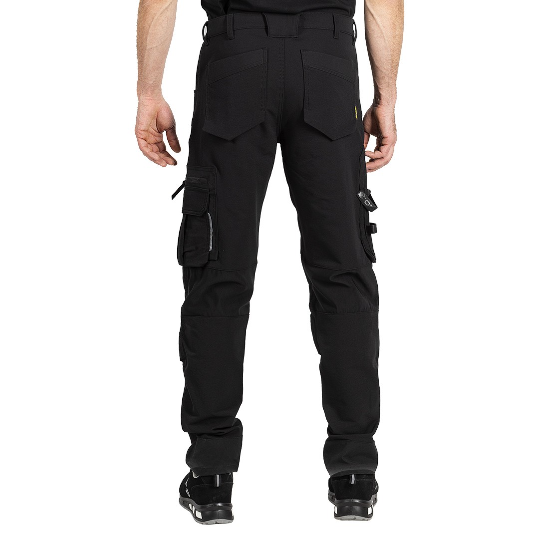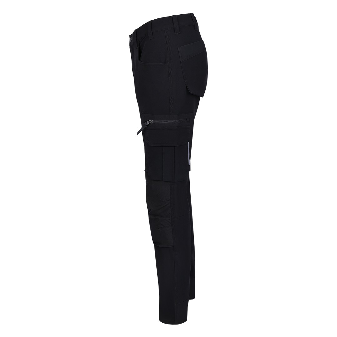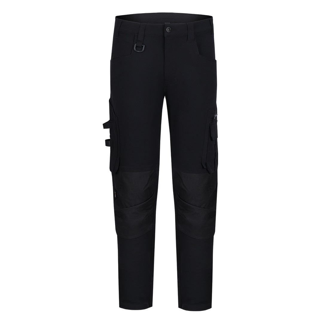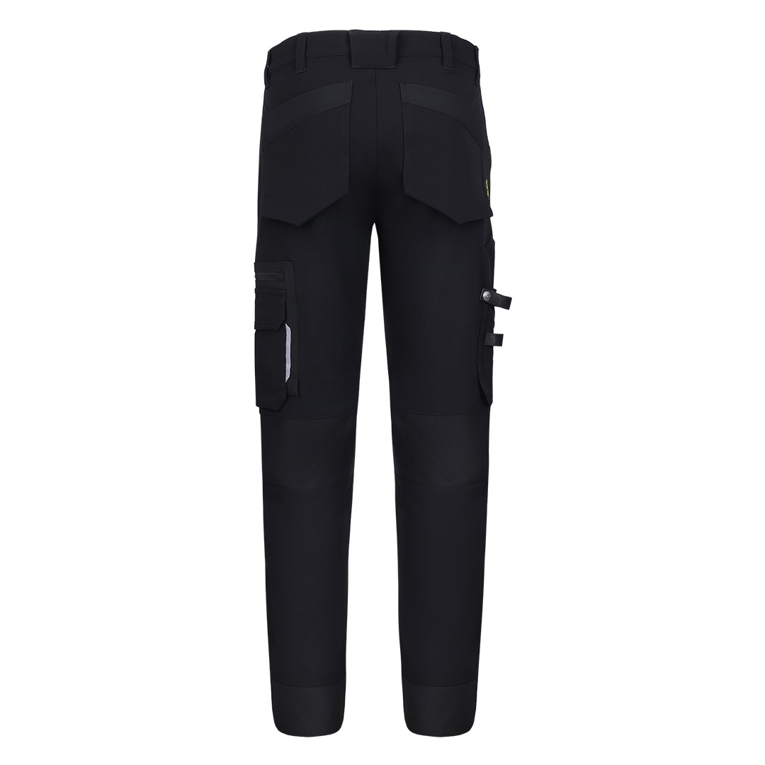 Elastične radne pantalone od 4-way stretch materijala, 295 g/m², sa multifunkcionalnim džepovima i ojačanjima na kolenima i zadnjem delu nogavica. Kolena su dodatno ojačana CORDURA® materijalom za povećanu otpornost na habanje. YKK rajsferšlusi. Mrežasti panel na zadnjoj strani kolena omogućava lakše savijanje i poboljšanu ventilaciju. Dva prednja džepa, dva zadnja džepa, dva multifunkcionalna džepa sa strane nogavica, D-prsten za kačenje dodatne opreme. Trostruki štepovi kao ojačanje, reflektivni detalji za poboljšanu vidljivost u uslovima smanjene osvetljenosti.