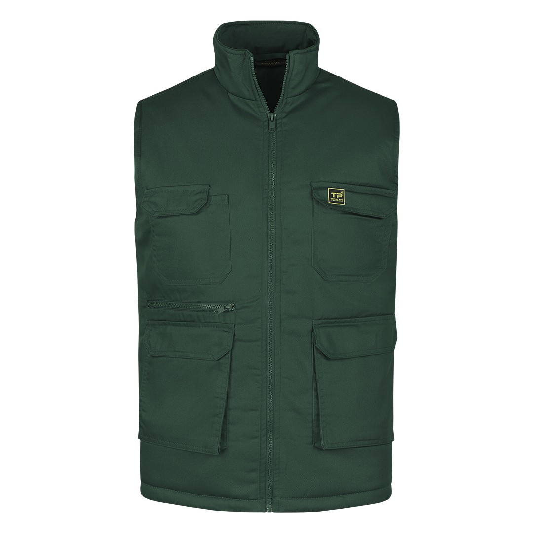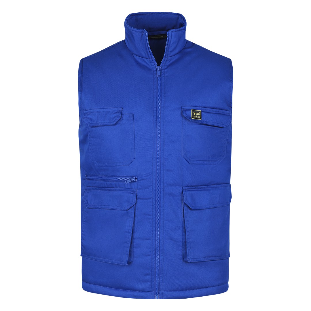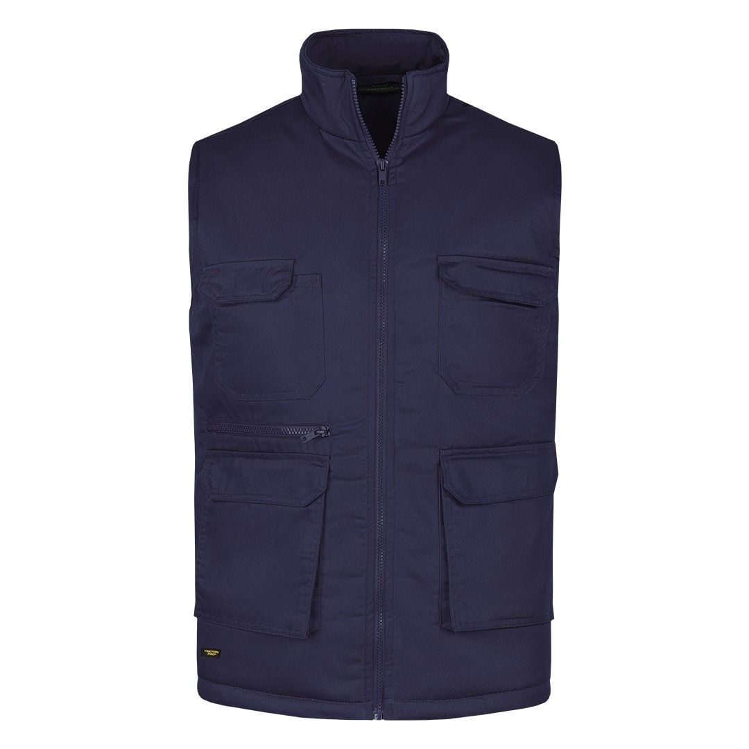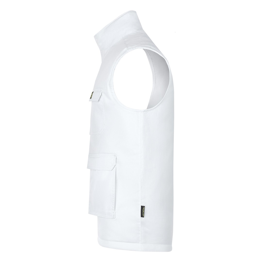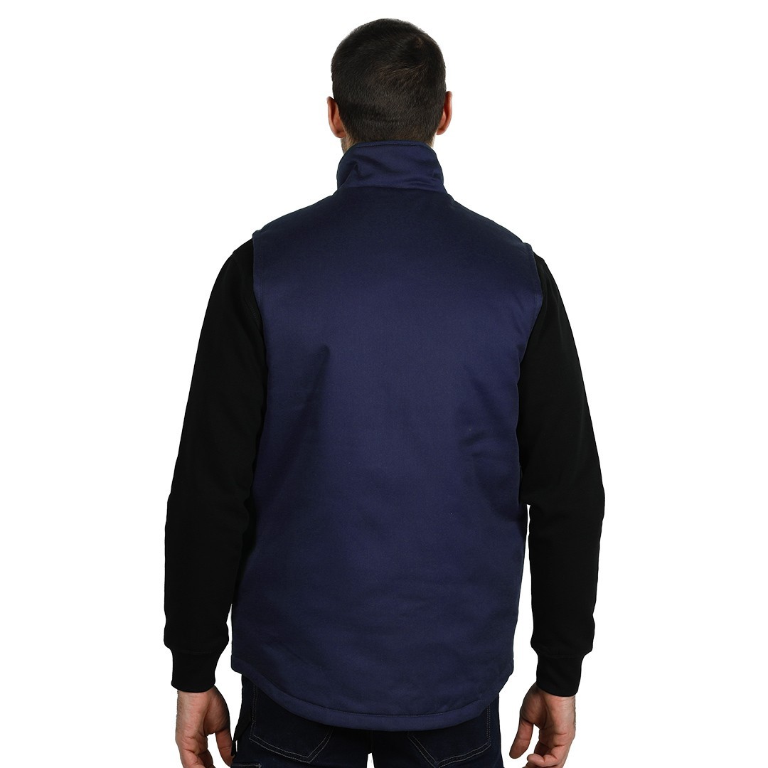 Radni prsluk od kepera sa postavom, visokim ovratnikom i praktičnim rasporedom džepova – četiri prednja džepa sa preklopom i jedan džep sa rajsferšlusom.