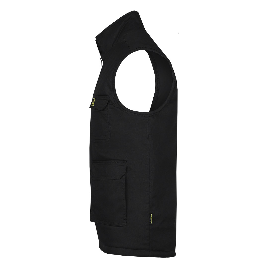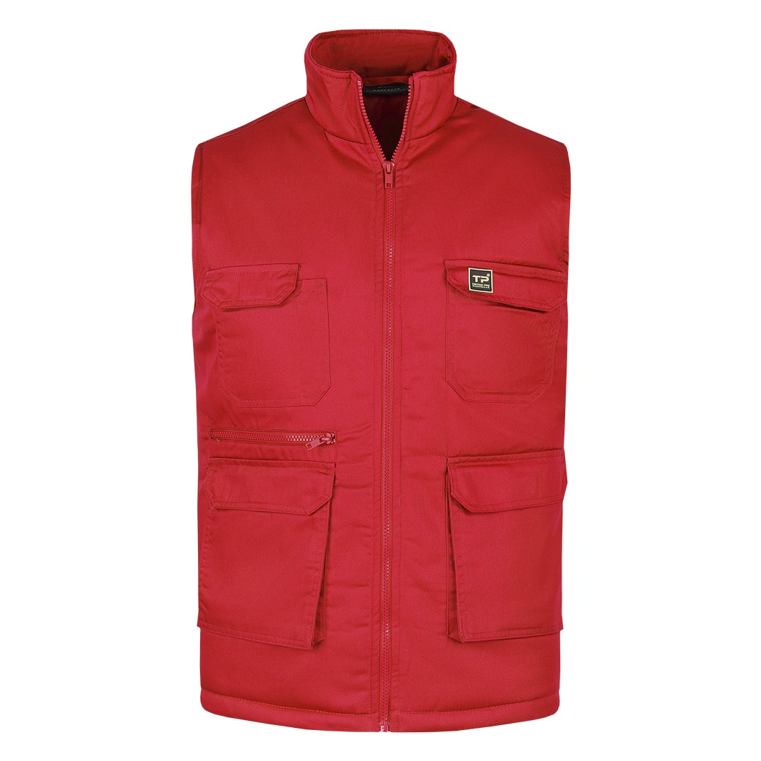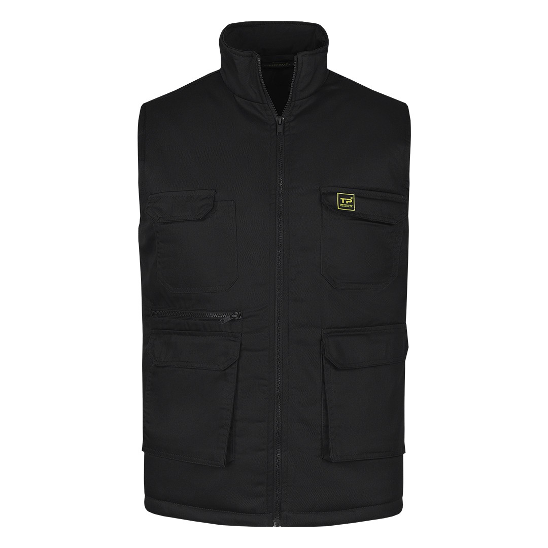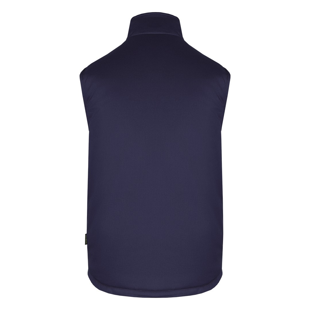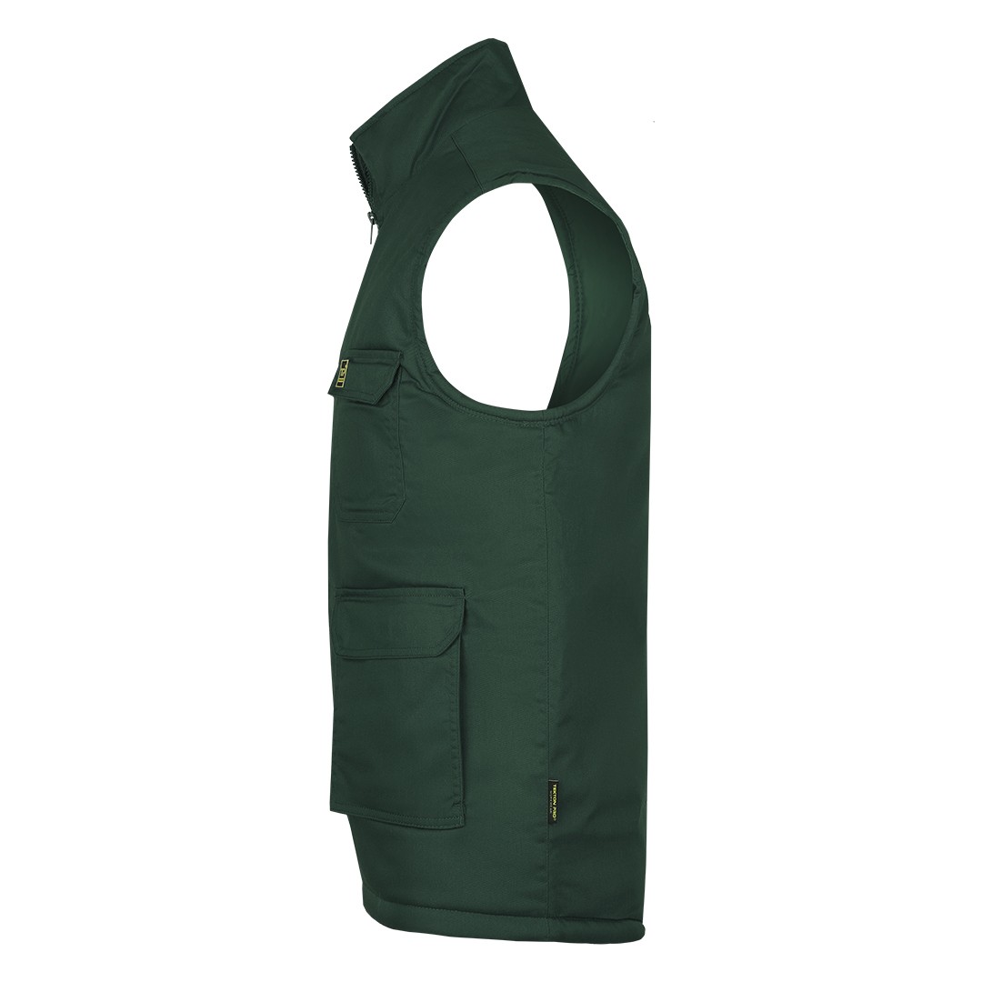 Radni prsluk od kepera sa postavom, visokim ovratnikom i praktičnim rasporedom džepova – četiri prednja džepa sa preklopom i jedan džep sa rajsferšlusom.