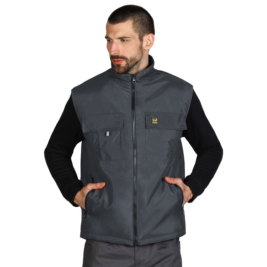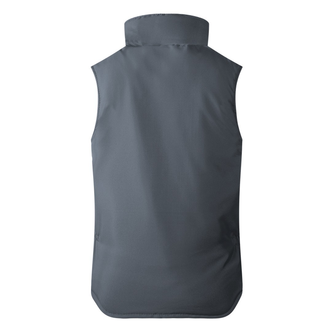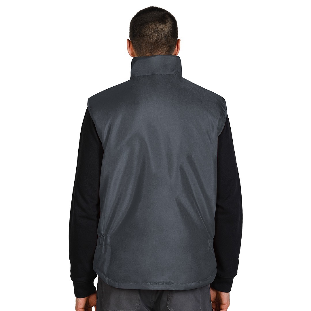 Radni prsluk, visoka kragna, duži zadni deo, pet prednjih džepova, uključujući džep za mobilni telefon i dva džepa sa rajsferšlusom, jedan unutrašnji džep, skriveni unutrašnji rajsferšlus na leđima za lakši pristup prilikom štampanja
