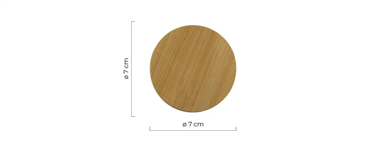 Materijal: bambus Dimenzija: O 7 x 1 cm Pakovanje: 454/227/1 Preporučena štampa: laserska gravura