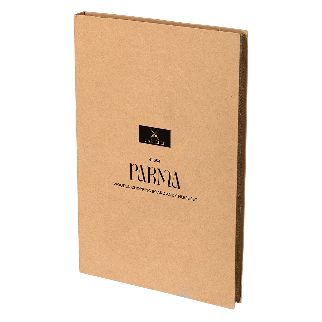 PARMA set za sireve osmišljen je kao idealan promotivni poklon za sve uživaoce dobrog sira i delikatesa. Set sadrži drvenu dasku namenjenu sečenju i serviranju, kao i dva noža prilagođena radu sa različitim vrstama tvrdih i mekih sireva. Daska je izrađena od drveta i pogodna je za personalizaciju laserskom gravurom, dok se noževi vizuelno i funkcionalno uklapaju u celinu seta. Proizvod dolazi u poklon pakovanju sa uputstvom sa unutrašnje strane i diskretnom štampom na spoljašnjoj strani, pri čemu se kutija može dodatno brendirati. PARMA set predstavlja kvalitetno rešenje za korporativne poklone, vinarije, gastro kampanje i promocije sa naglaskom na uživanje i deljenje.