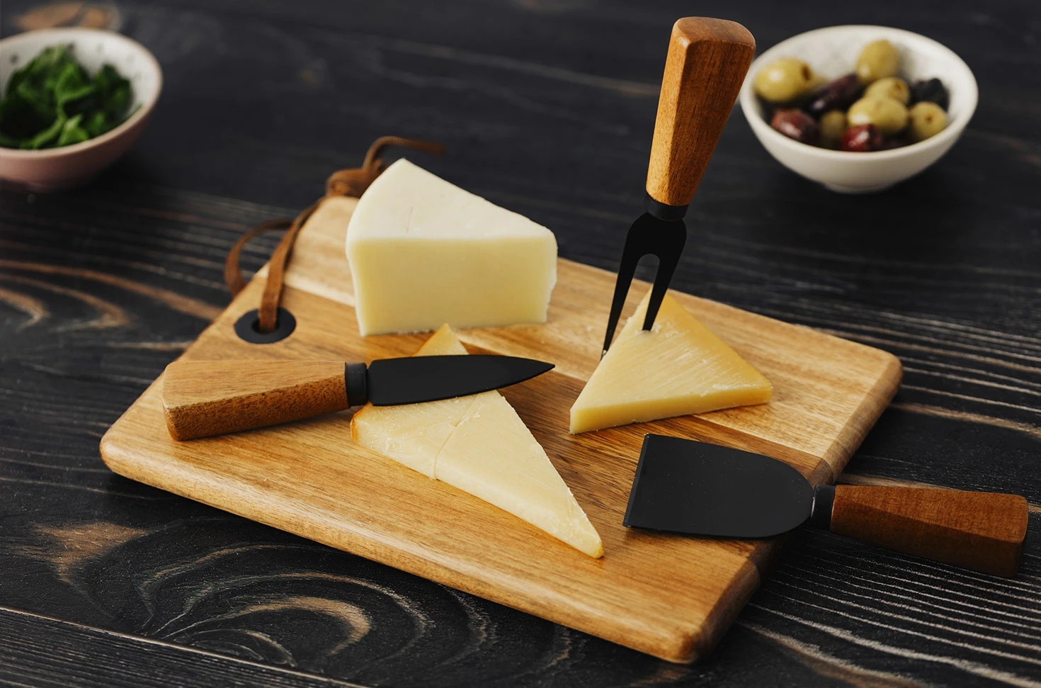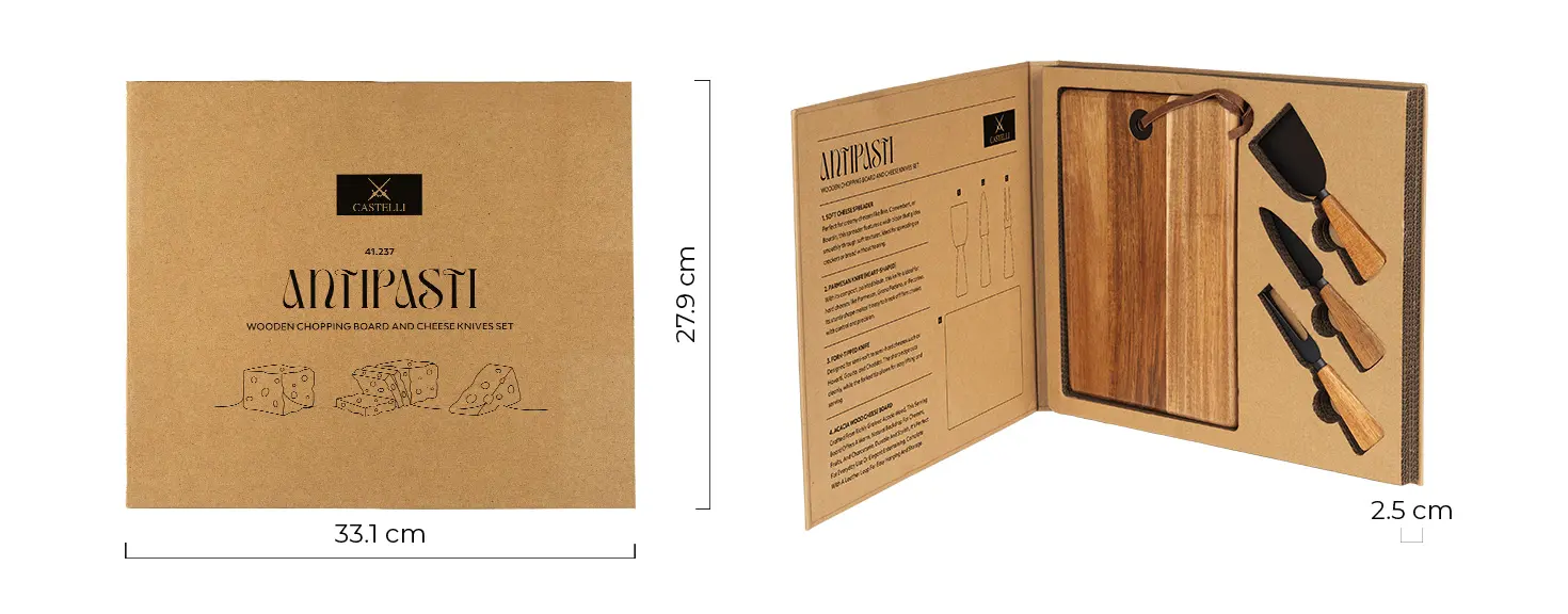 Set drvena daska i pribor za sir sa drvenom drškom, 4/1 ANTIPASTI
