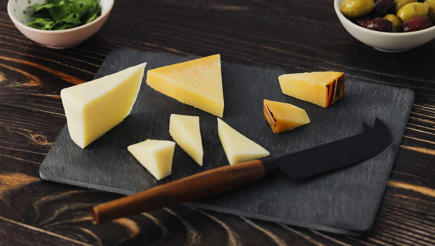 Set kamena ploča i nož za sir sa drvenom drškom, 2/1 UMAMI