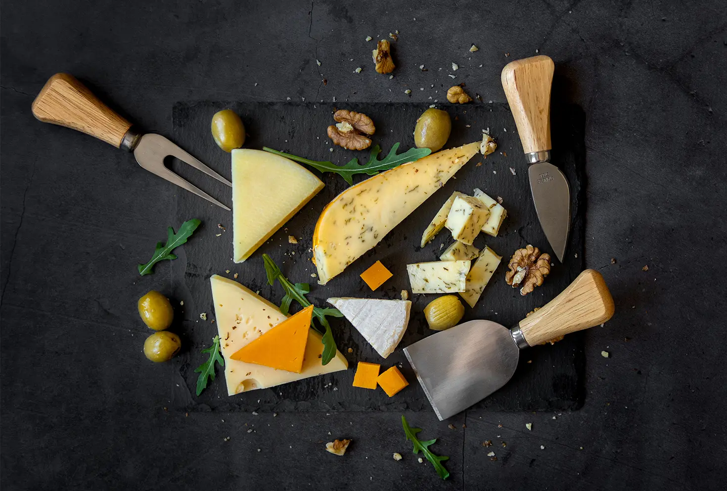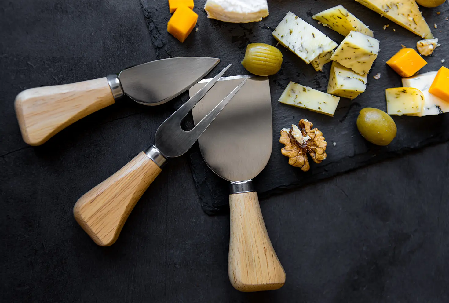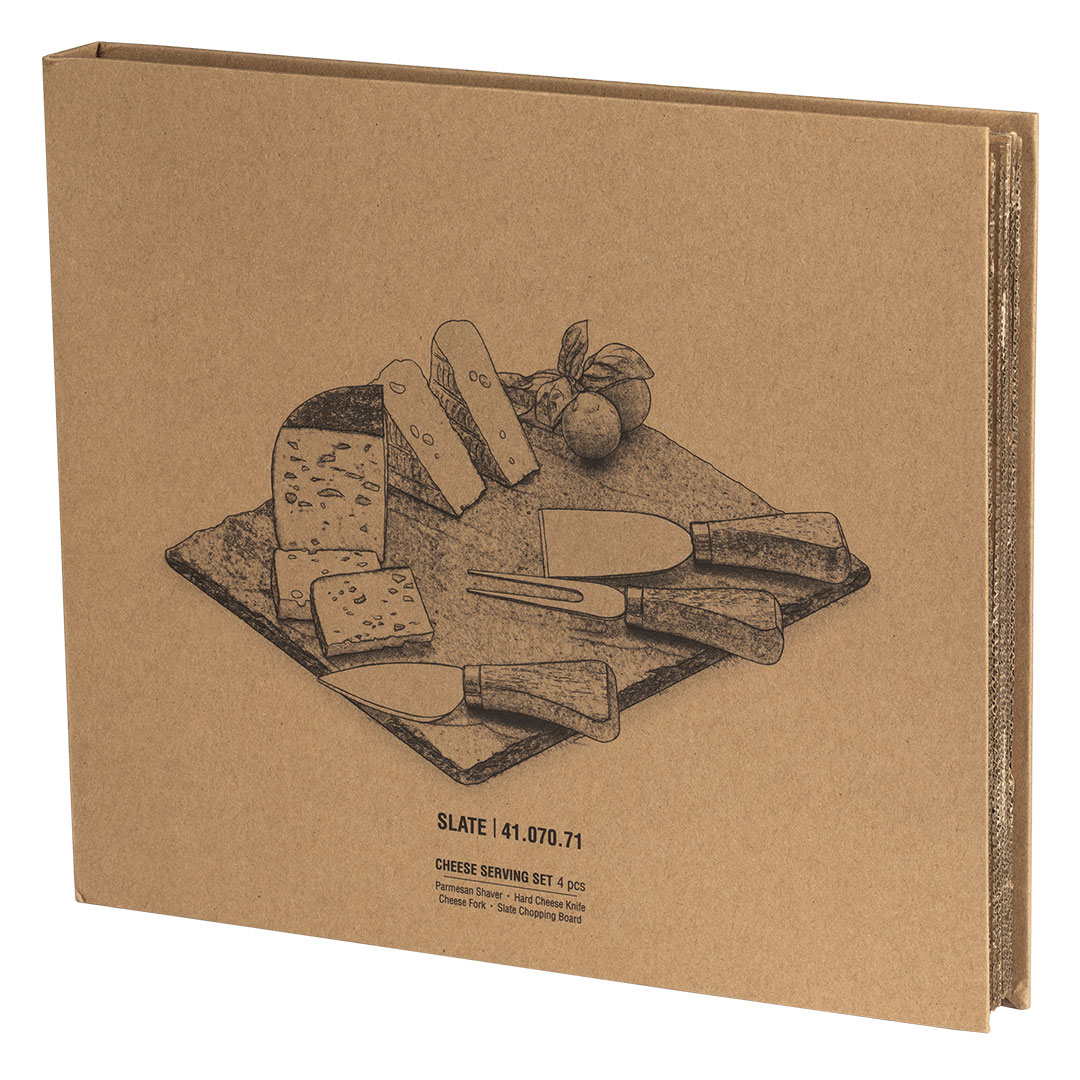 Set kamena ploča i pribor za sir sa drvenom drškom, 4/1 SLATE