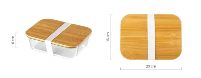 Materijal: staklo/bambus Dimenzija: 20 x 15 x 6 cm Pakovanje: 12/1 Preporučena štampa: laserska gravura