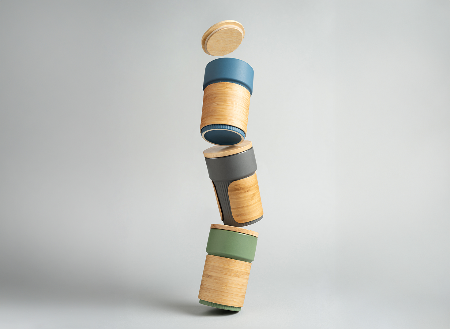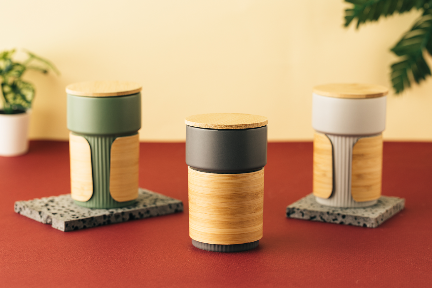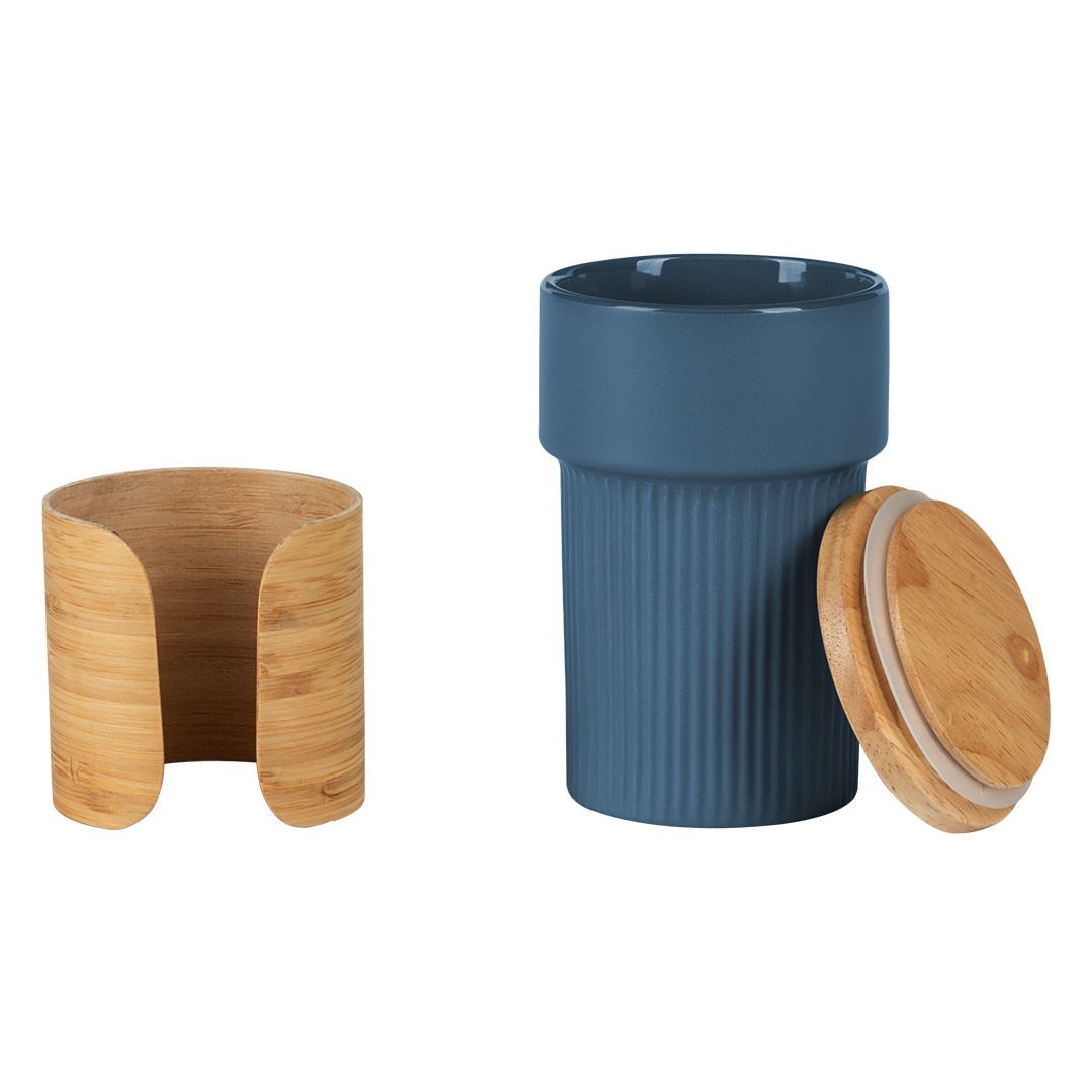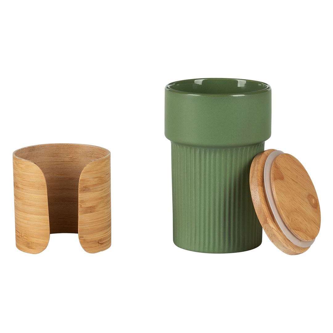 Keramička šolja sa poklopcem i držačem od bambusa, 340 ml LARS