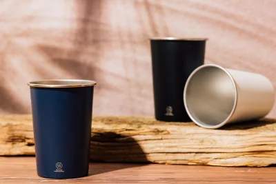 Materijal: reciklirani nerđajući čelik Dimenzija: O 8 x 10.6 cm Pakovanje: 50/1 Preporučena štampa: laserska gravura