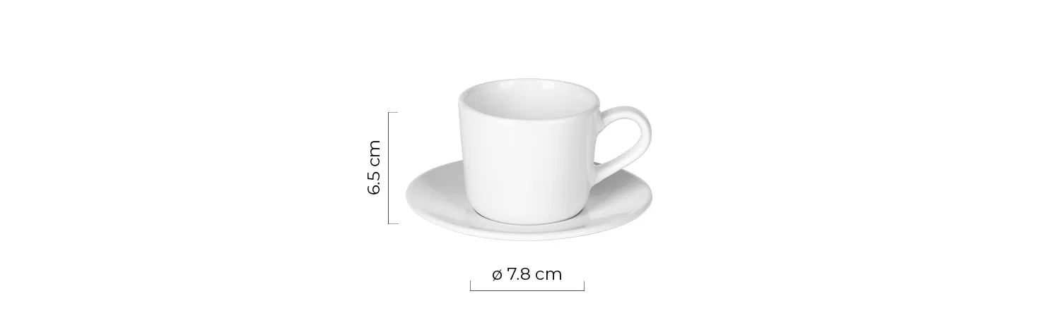 Dimenzija šolje: O 7.8 x 6.5 cm Dimenzija tacne: O 14 x 1.6 cm Pakovanje: 36/6 Preporučena štampa: tampon, preslikač