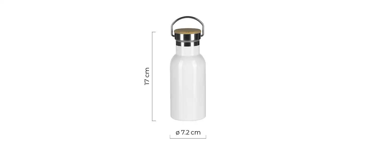 Materijal: nerđajući čelik/bambus Dimenzija: O 7.2 x 17 cm Pakovanje: 50/1 Preporučena štampa: sublimacija