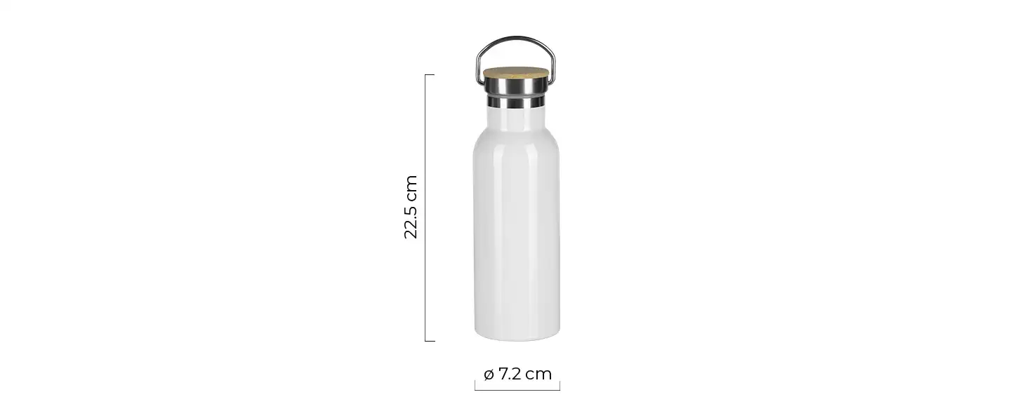 Materijal: nerđajući čelik/bambus Dimenzija: O 7.2 x 22.5 cm Pakovanje: 24/1 Preporučena štampa: sublimacija