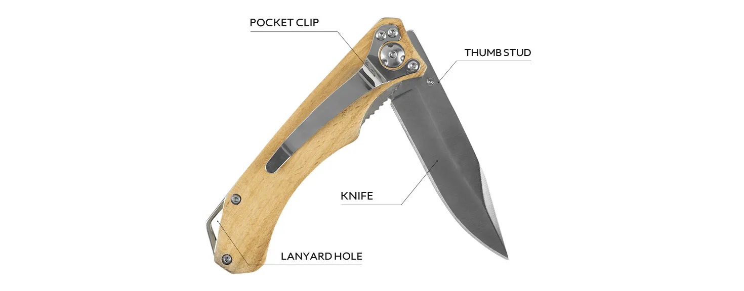 Džepni nož sa 4 funkcije: štipaljka za džep, otvor za kanap, nož, dugme za palac