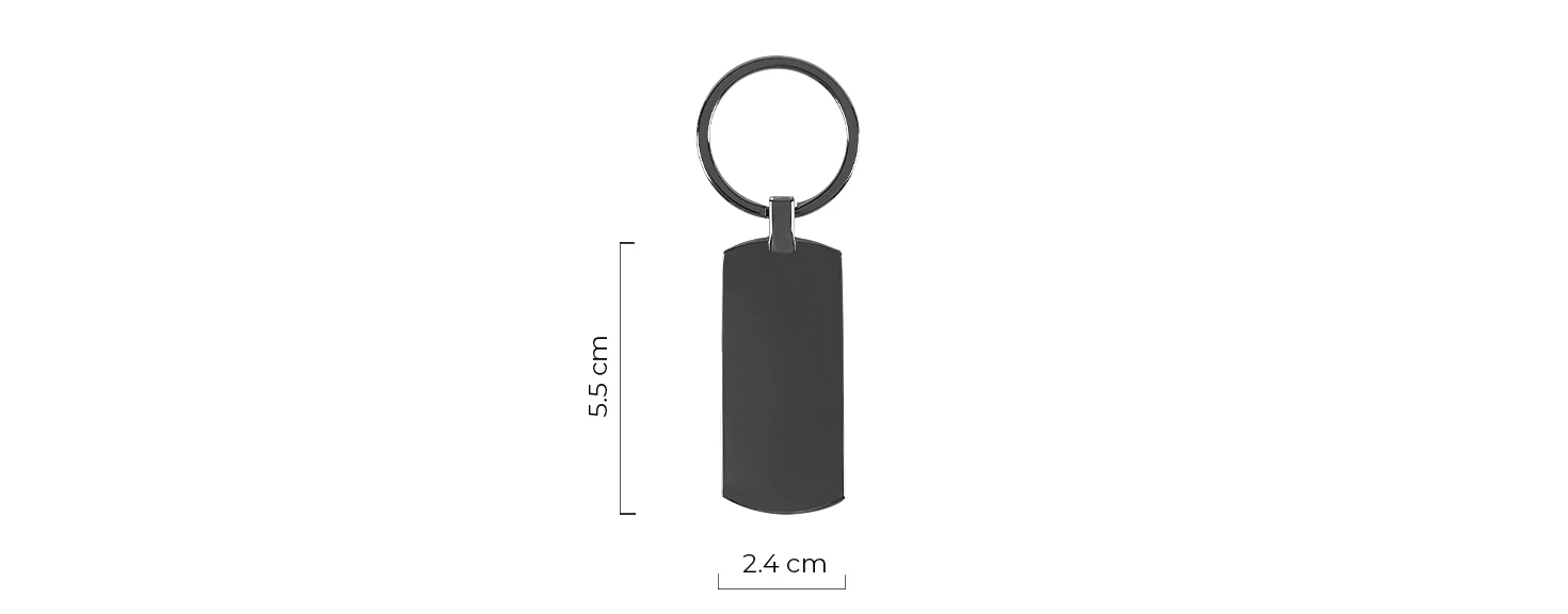 Privezak za ključeve • Legura cinka • Pravougaoni oblik • Blago zakrivljene ivice • Završna obrada tamni metal • Moderan i profesionalan dizajn • Pakovan u poklon koverti