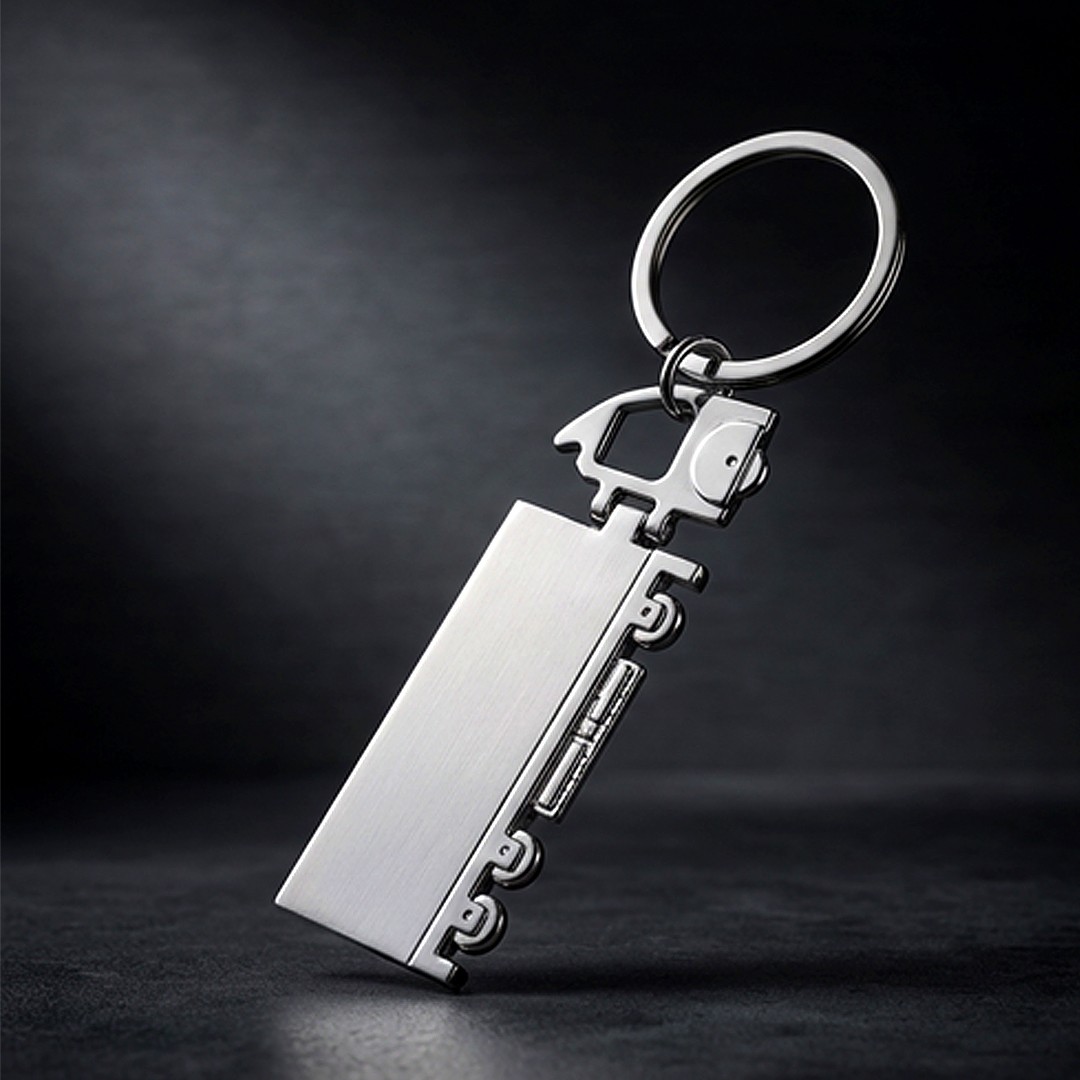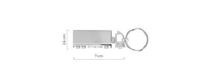 Metalni privezak za ključeve dizajniran u obliku kamiona, sa rotirajućim prednjim delom koji mu daje dodatnu funkcionalnost i vizuelnu zanimljivost. Predstavlja originalan poklon za ljubitelje automobilske tematike, kao i praktičan promotivni proizvod za profesionalce u oblasti transporta i logistike. Privezak se isporučuje upakovan u poklon kovertu.