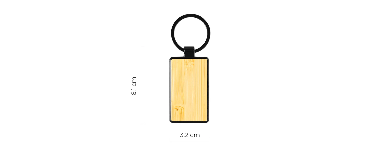 Materijal: metal/bambus Dimenzija: 6.1 x 3.2 x 0.7 cm Pakovanje: 400/100/1 Preporučena štampa: laserska gravura