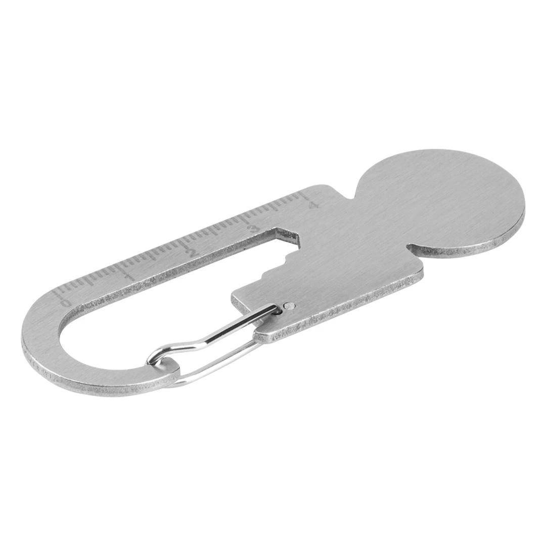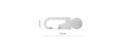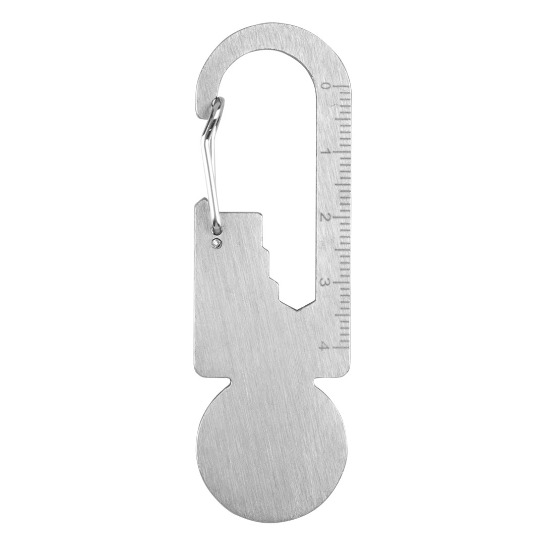 Višenamenski alat sa 6 funkcija: otvarač za flaše, lenjir, žeton za kolica za kopovinu, karabinjer, ključ za šrafove, privezak
