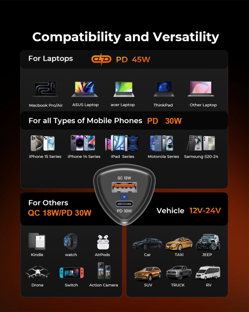 Punjač mobilnih uređaja za automobil, 51W VETTEL