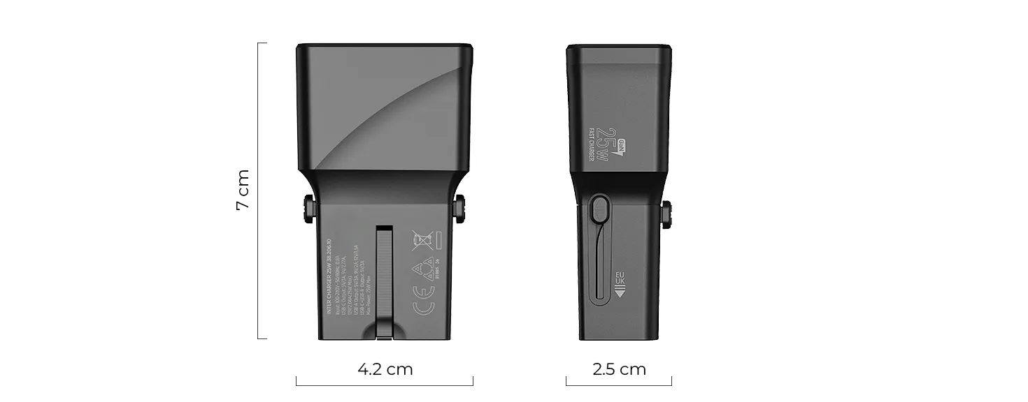 Ulaz: AC 100-240V Izlaz: Type-C, USB-A, Max 25W Dimenzija: 7 x 4.2 x 2.5 cm Pakovanje: 80/1 Preporučena štampa: tampon, digitalna štampa