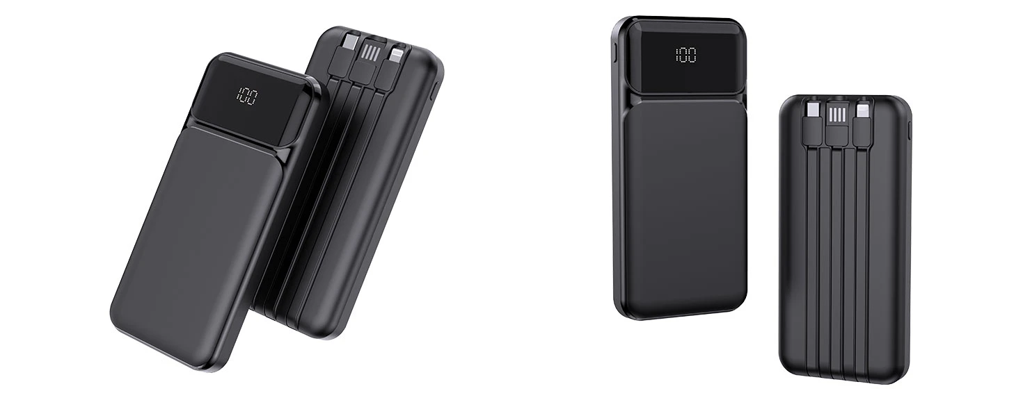 Ugrađeni Type-C, Lightning i USB-A kablovi omogućavaju jednostavno punjenje različitih uređaja bez potrebe za dodatnim kablovima, dok se sam power bank puni putem USB-A kabla. Kompaktan dizajn i univerzalna kompatibilnost čine ga idealnim za svakodnevnu upotrebu, putovanja i poslovne poklone.