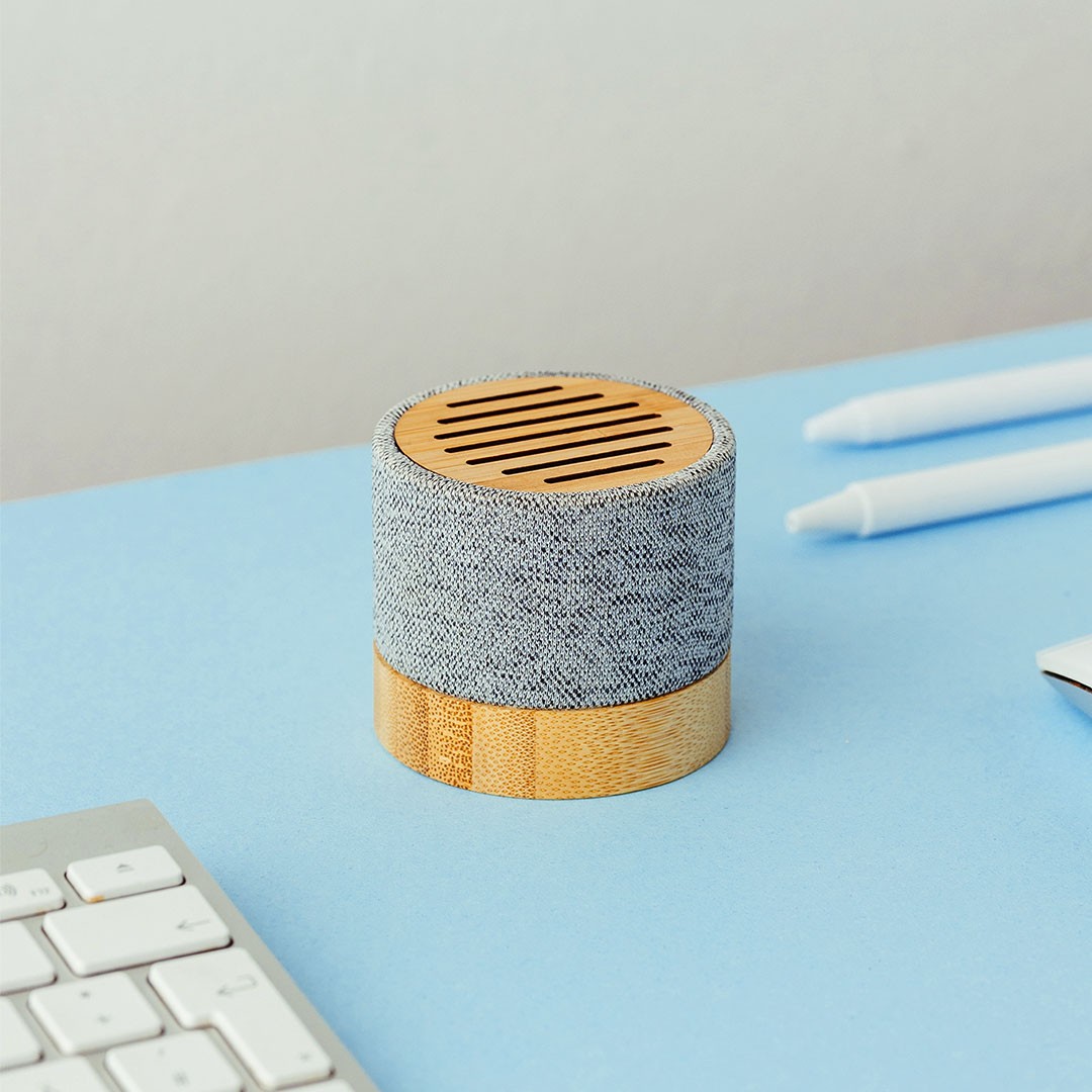 Bežični zvučnik snage 3 W u kućištu od bambusa i RPET materijala, namenjen svakodnevnoj upotrebi u kućnom ili kancelarijskom okruženju. Kompaktan format čini ga praktičnim izborom za promotivne i poslovne poklone. Isporučuje se u poklon kutiji sa uključenim Type-C kablom za punjenje.