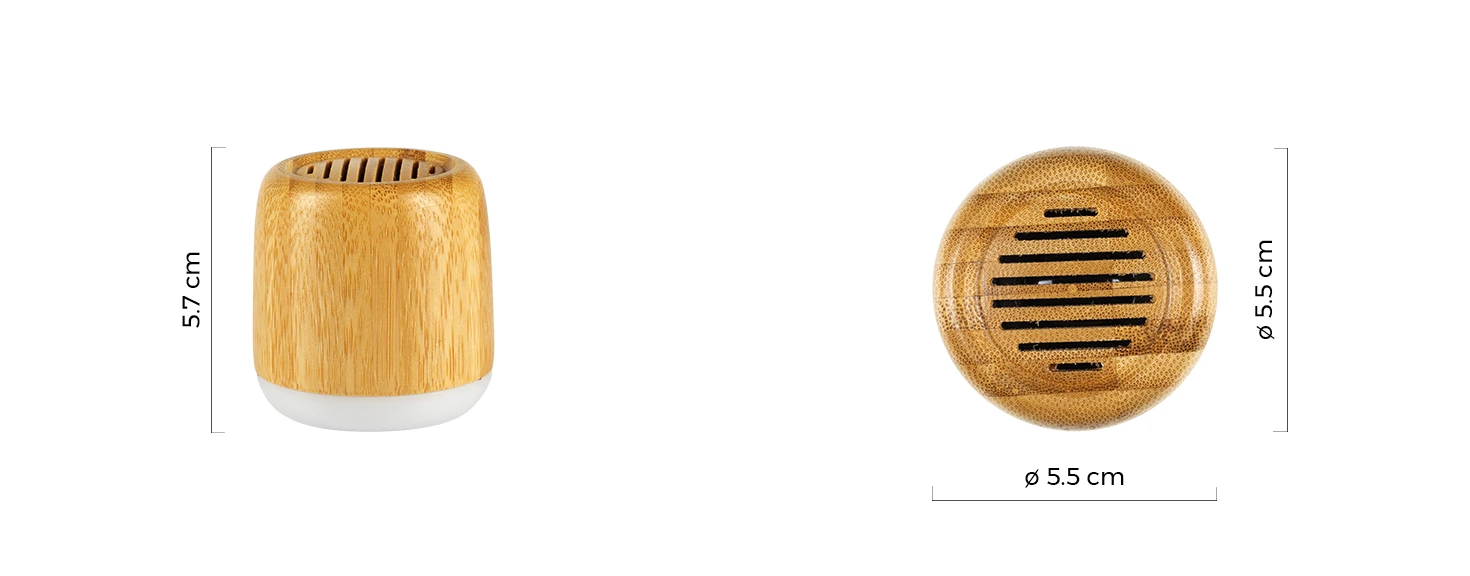 Materijal: bambus/plastika Dimenzija: 5.5 x 5.5 x 5.9 cm Pakovanje: 80/1 Preporučena štampa: laserska gravura, tampon, digitalna štampa