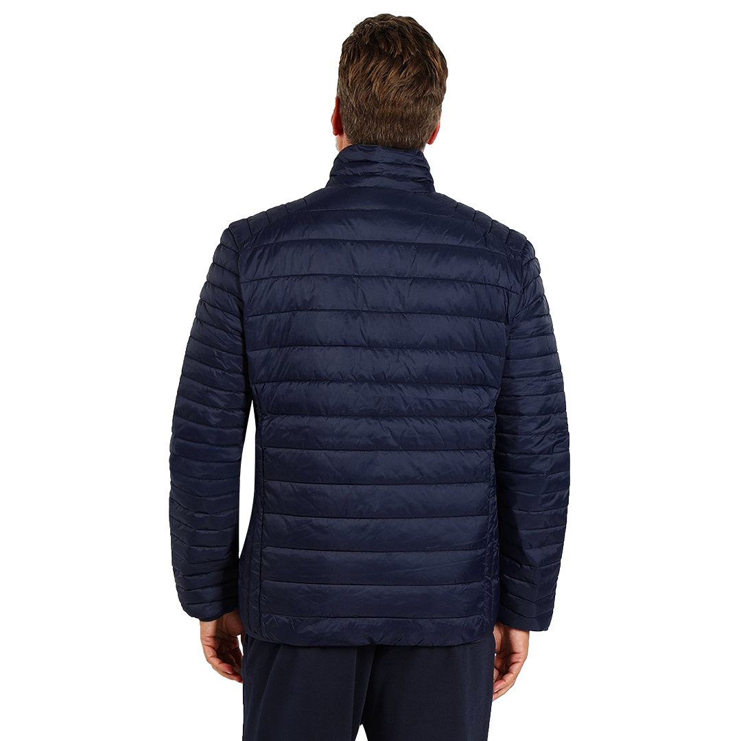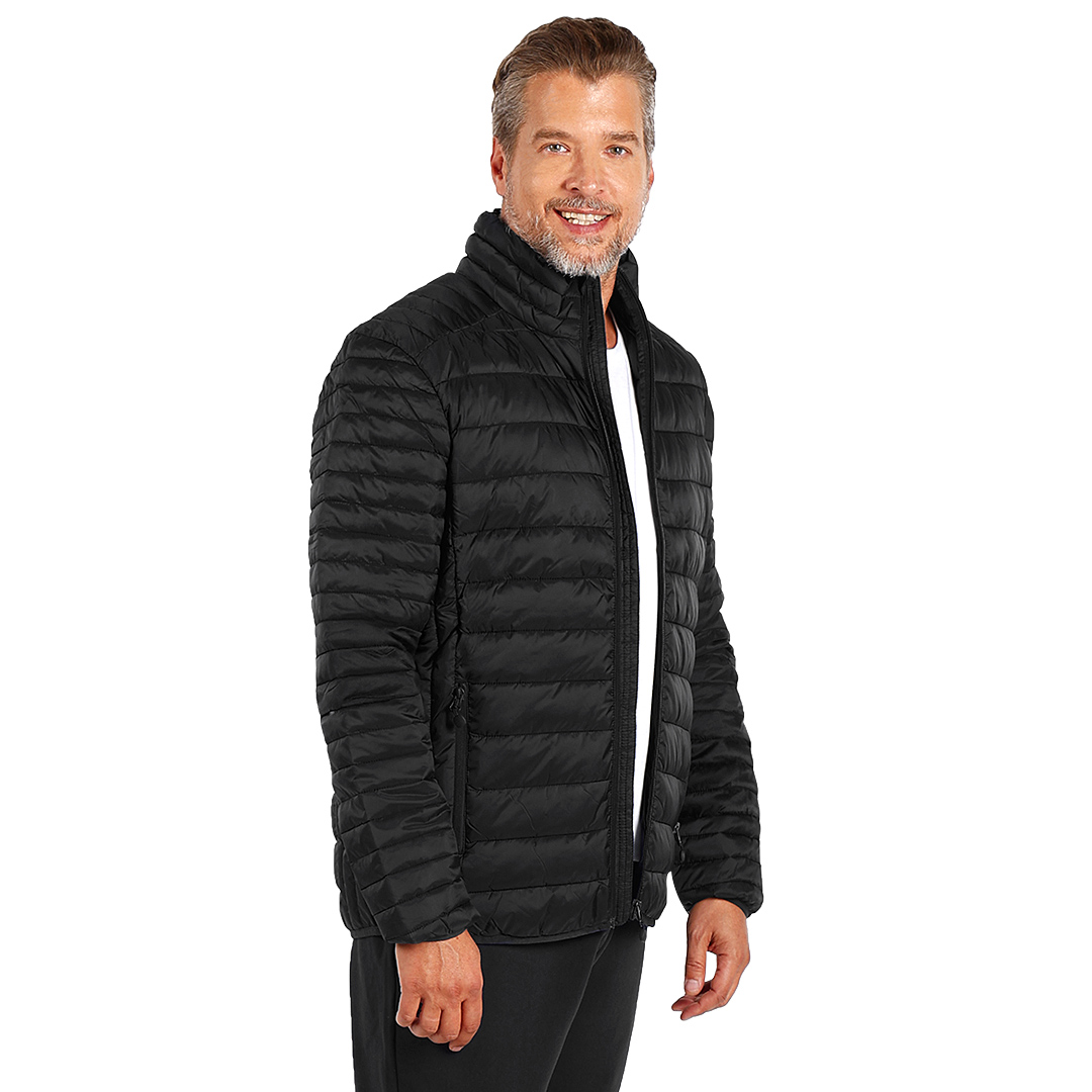 Jakna sa laganim punjenjem, štepana, dva prednja džepa sa rajsferšlusom, elastičnim paspulima na rukavima i dnu, vrećica za pakovanje