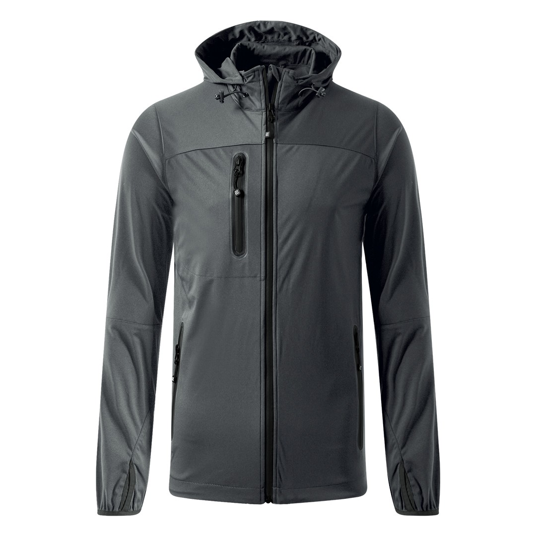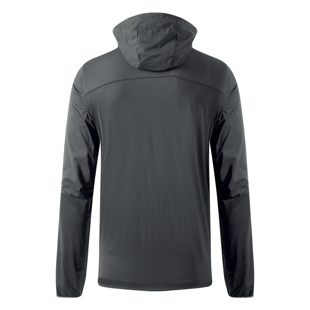 Jakna, elastični učkuri sa steznim regulatorima u kapuljači, dva prednja džepa sa rajsferšlusom i jedan džep na grudima, svi rajsferšlusi su vodootporni, otvor za palac na rukavima, zadnja strana duža od prednje