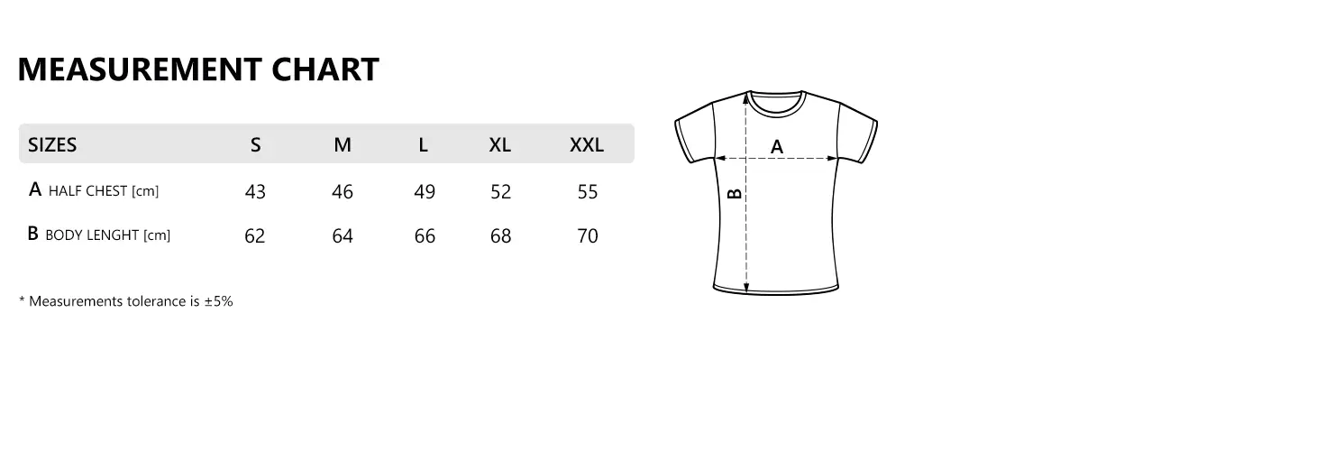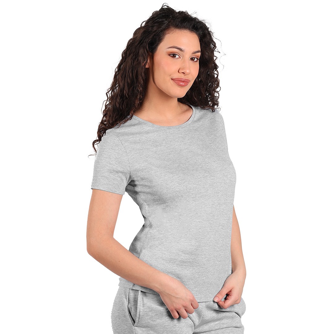 Ženska majica, 160 g/m2, blago strukirana, šivena sa strane, dupli štepovi na rukavima i dnu, štep oko rendera i dodatni štep duž ramena, okovratnik ojačan trakom