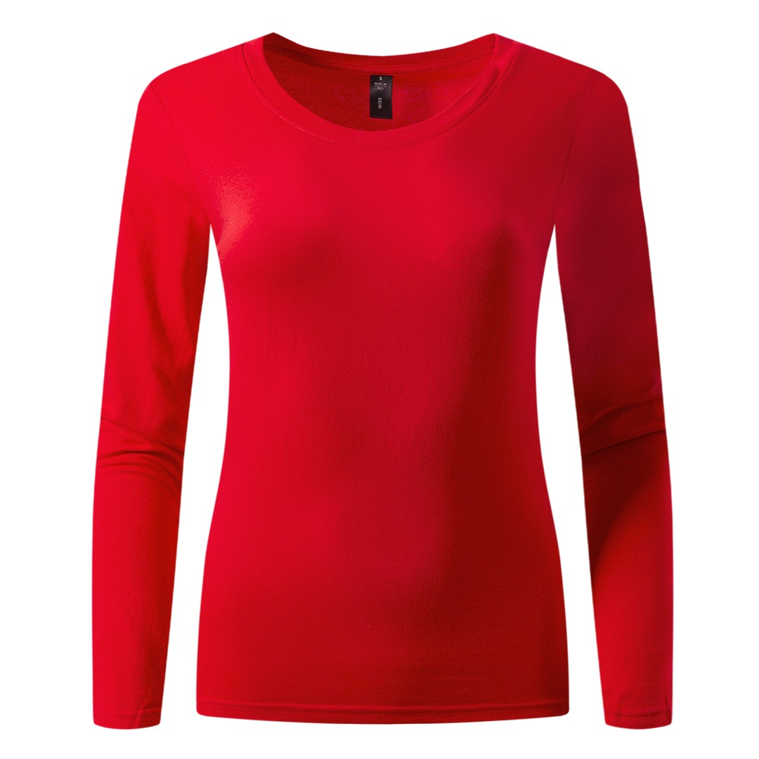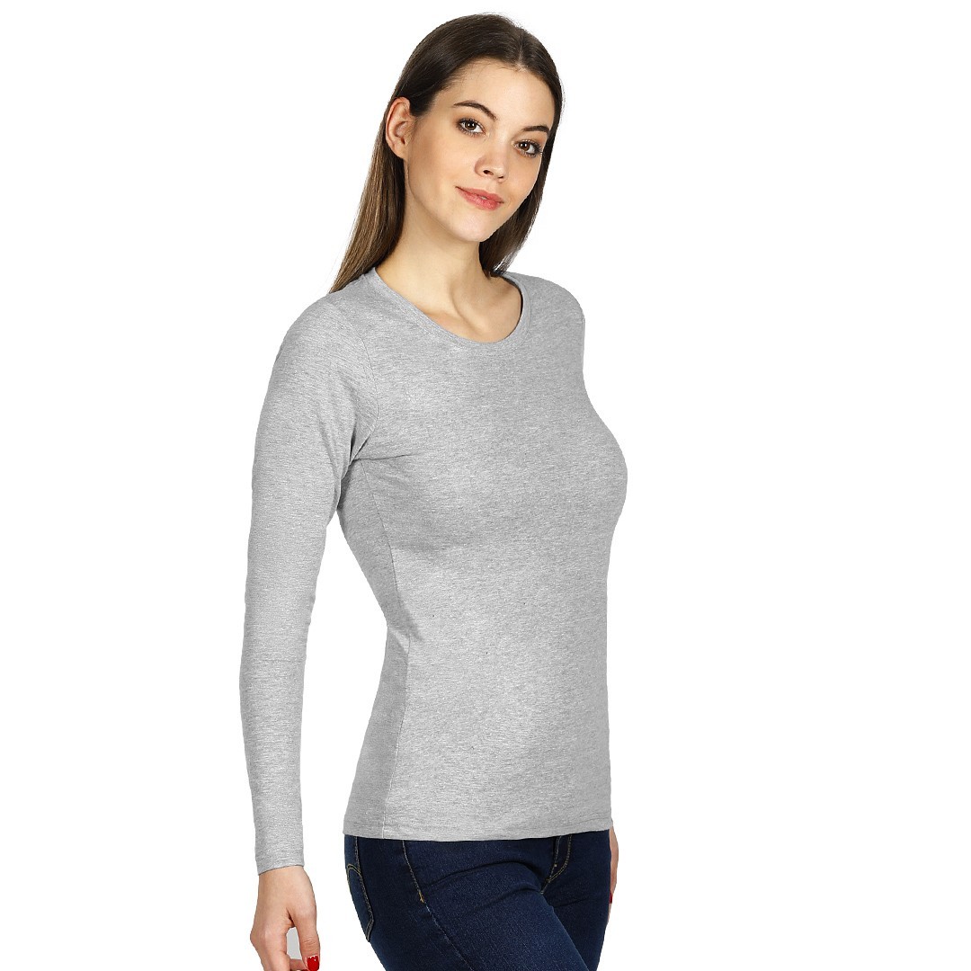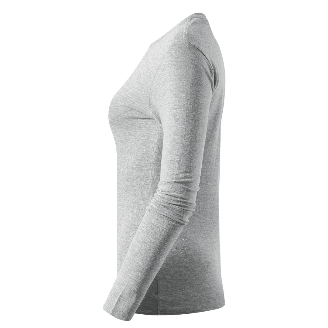 Ženska majica dugih rukava, 160 g/m2, blago strukirana, šivena sa strane, dupli štepovi na rukavima i dnu, štep oko rendera i dodatni štep duž ramena, okovratnik ojačan trakom