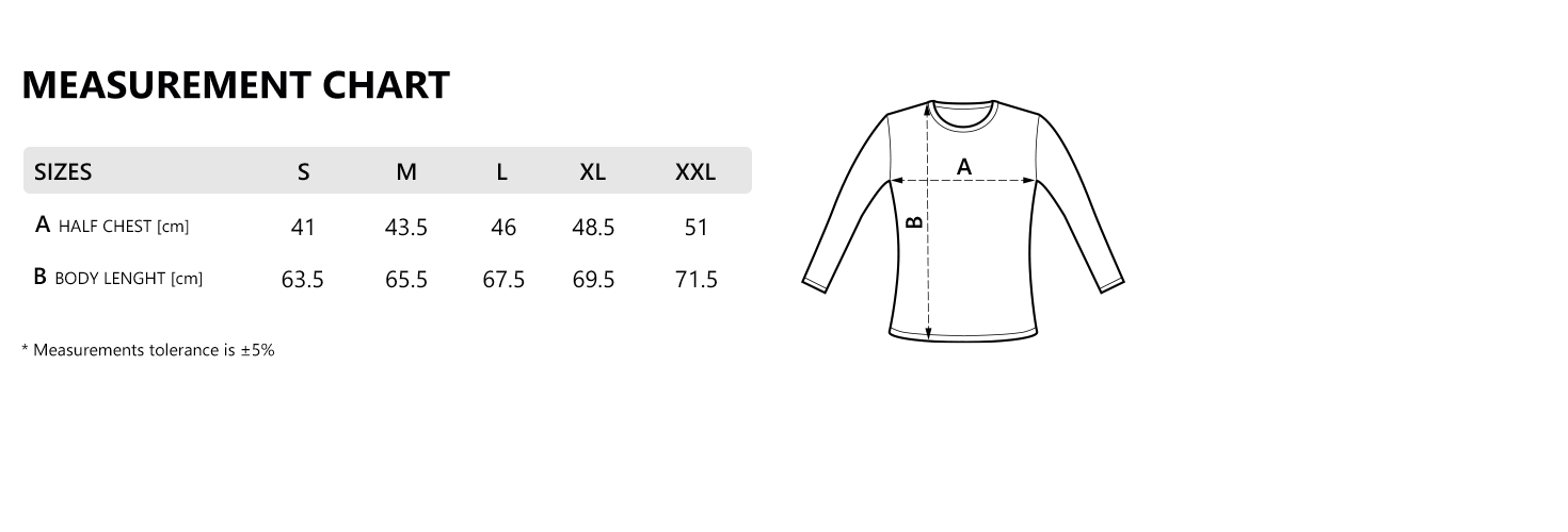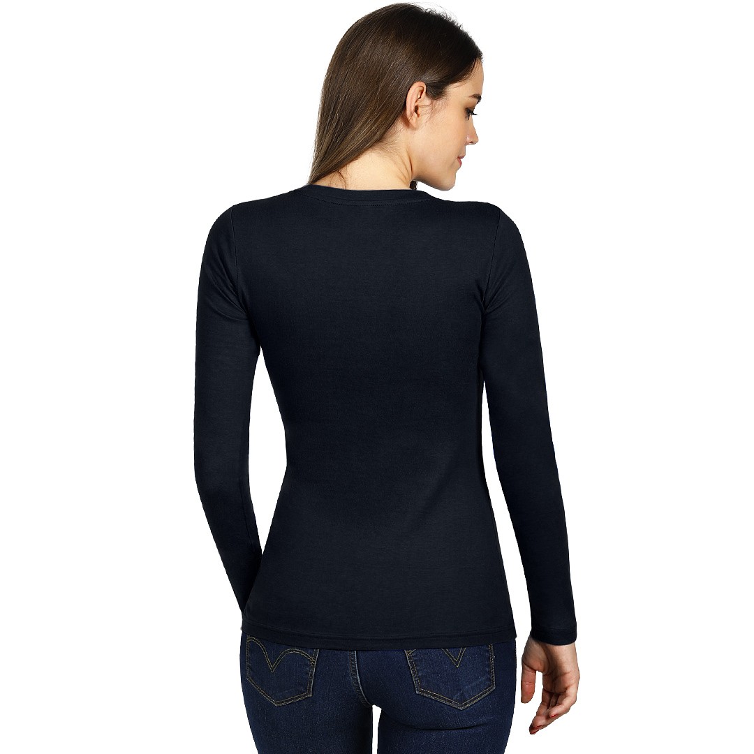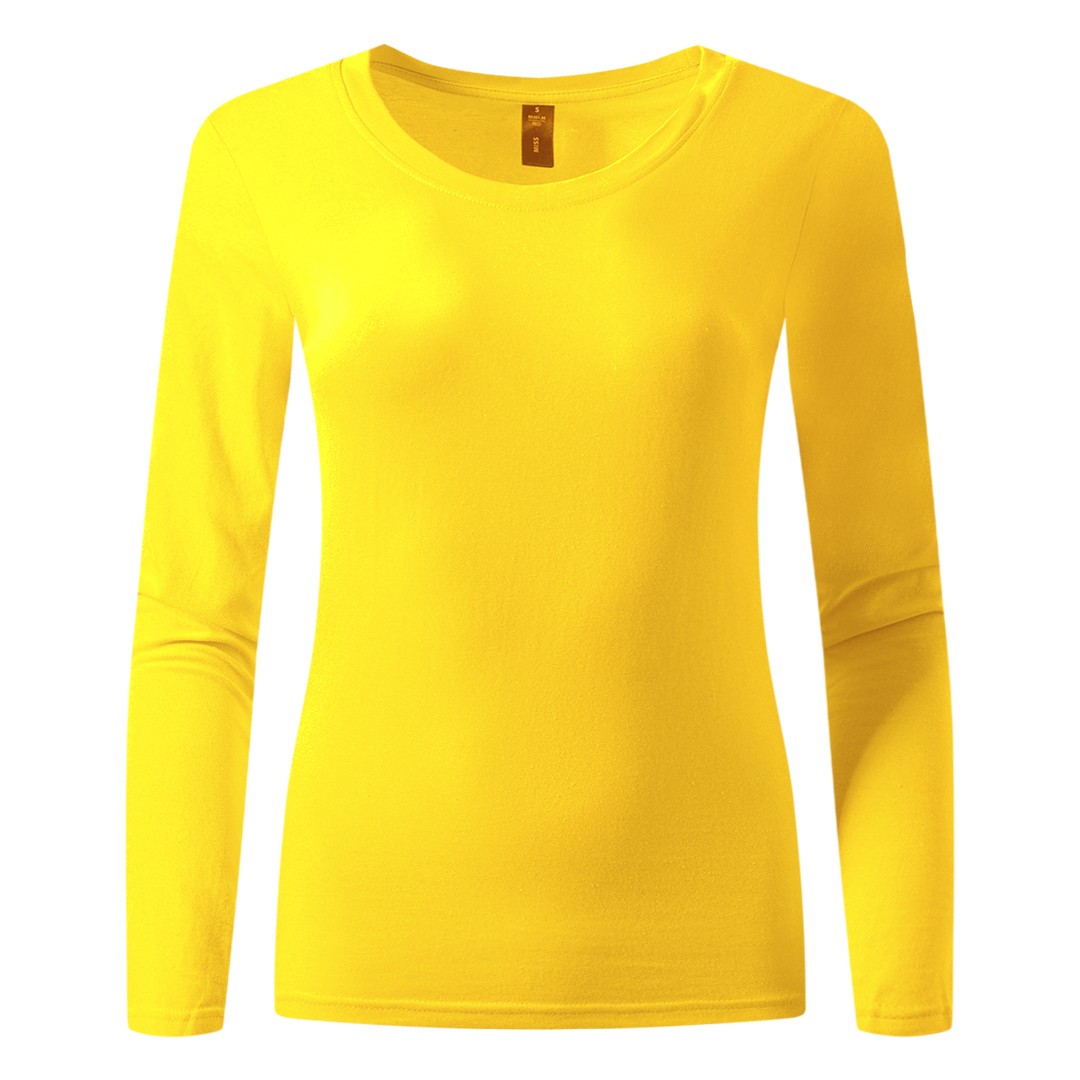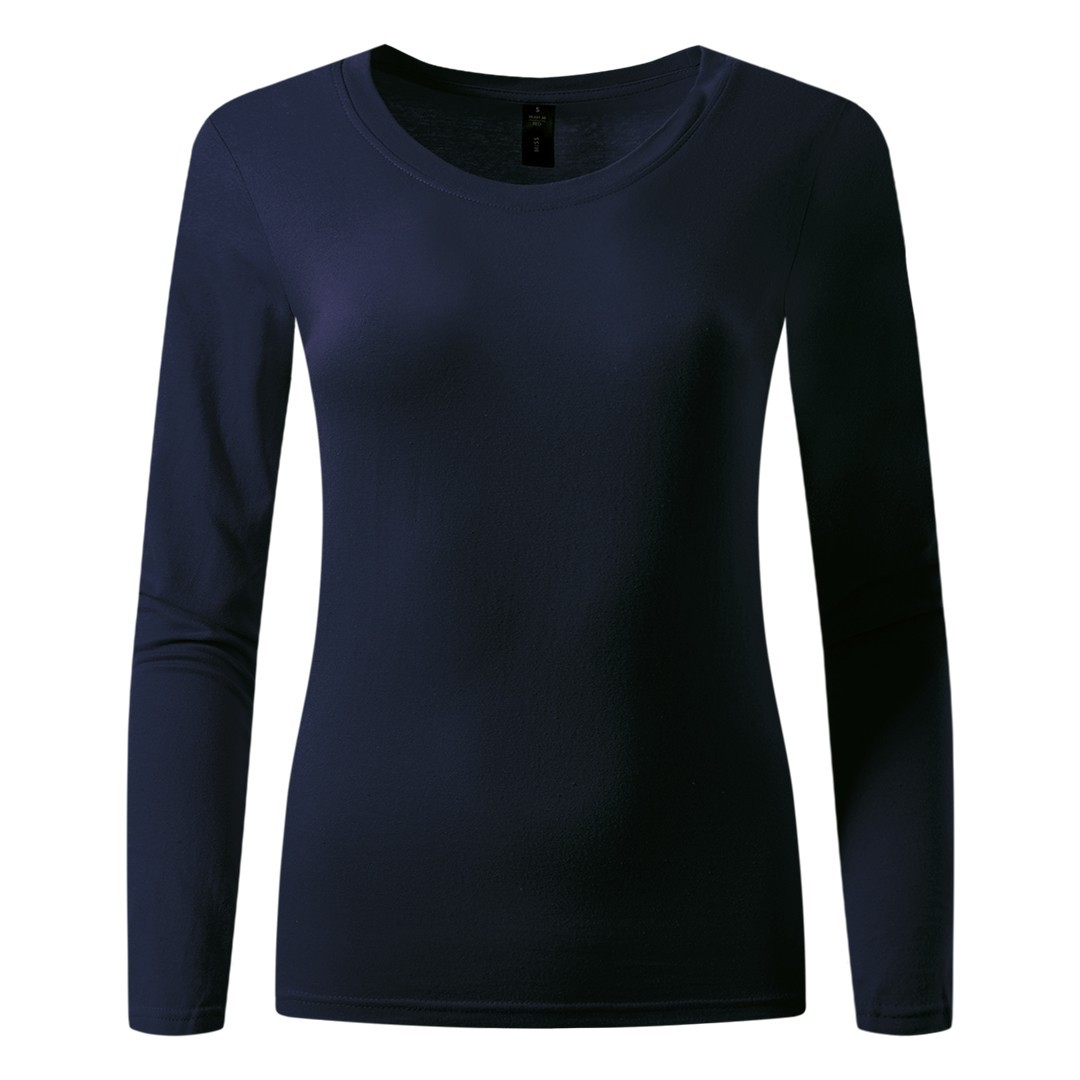 Ženska majica dugih rukava, 160 g/m2, blago strukirana, šivena sa strane, dupli štepovi na rukavima i dnu, štep oko rendera i dodatni štep duž ramena, okovratnik ojačan trakom