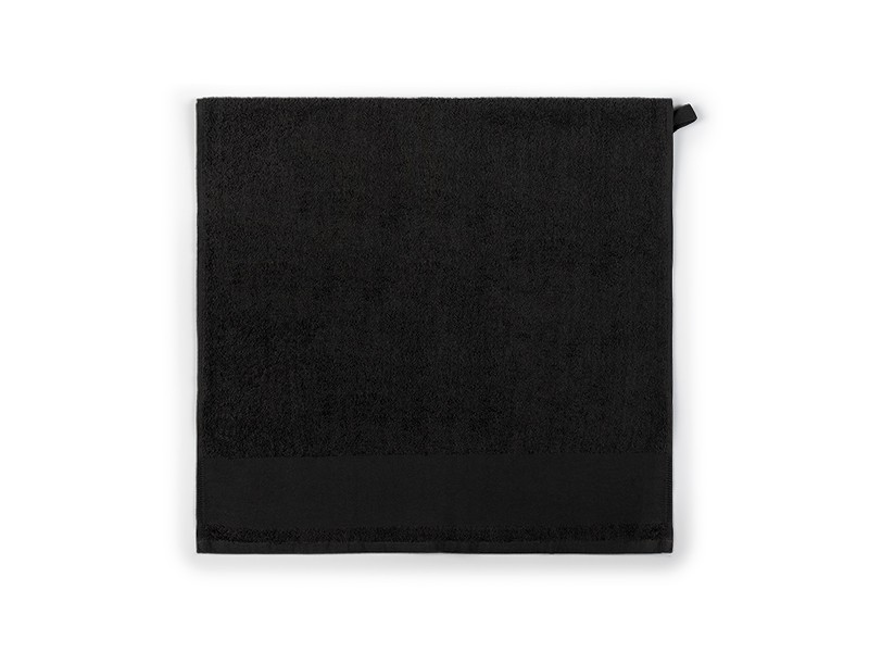 Peškir, 380 g/m2, bordura za brendiranje širine 10 cm i zakačka od pamučne trake u boji peškira
