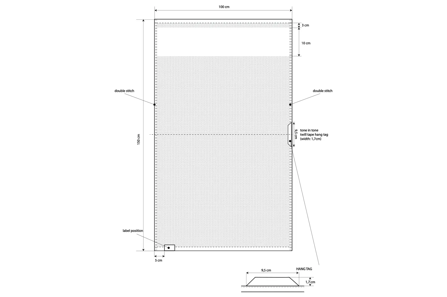 Dimenzija: 100 x 150 cm Sastav: 100% pamuk Pakovanje: 20/5/1 Preporučena štampa: sito, preslikač, vez