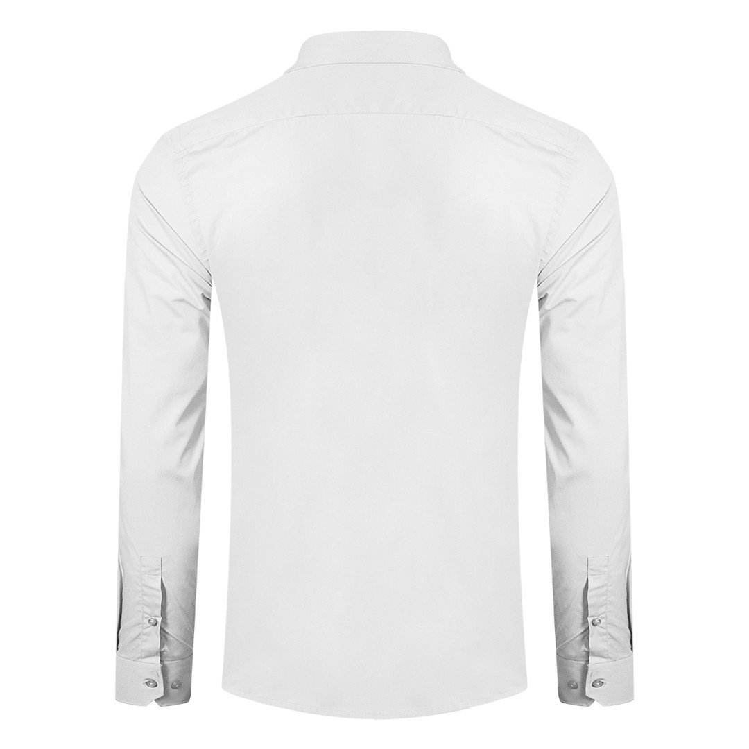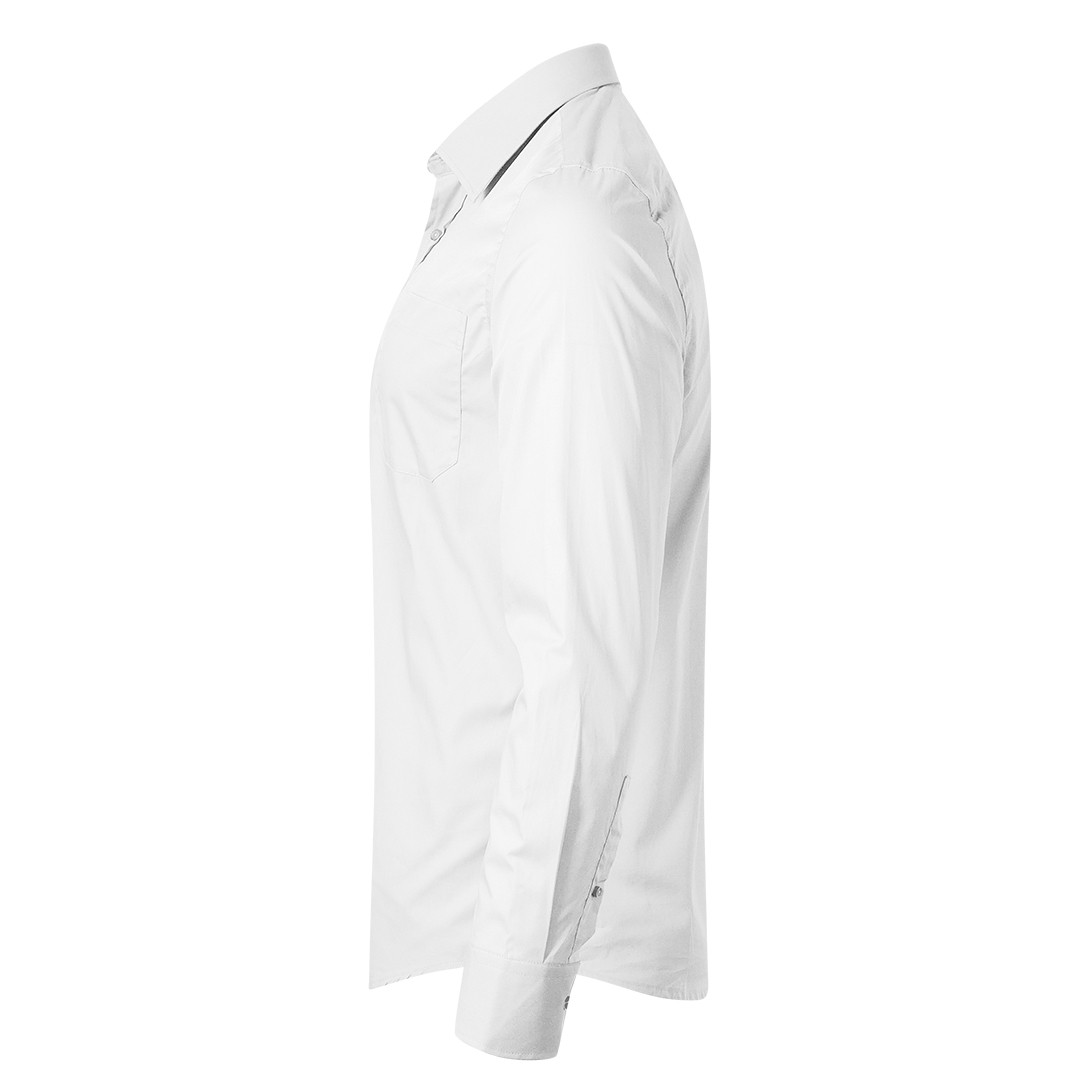 Muška košulja, klasičan kroj, sa lajsnom, džep sa leve strane grudi, sedam dugmadi napred, tri dugmeta na manžetnama, rezervna dugmad, sva dugmad u boji košulje, lako peglanje i održavanje