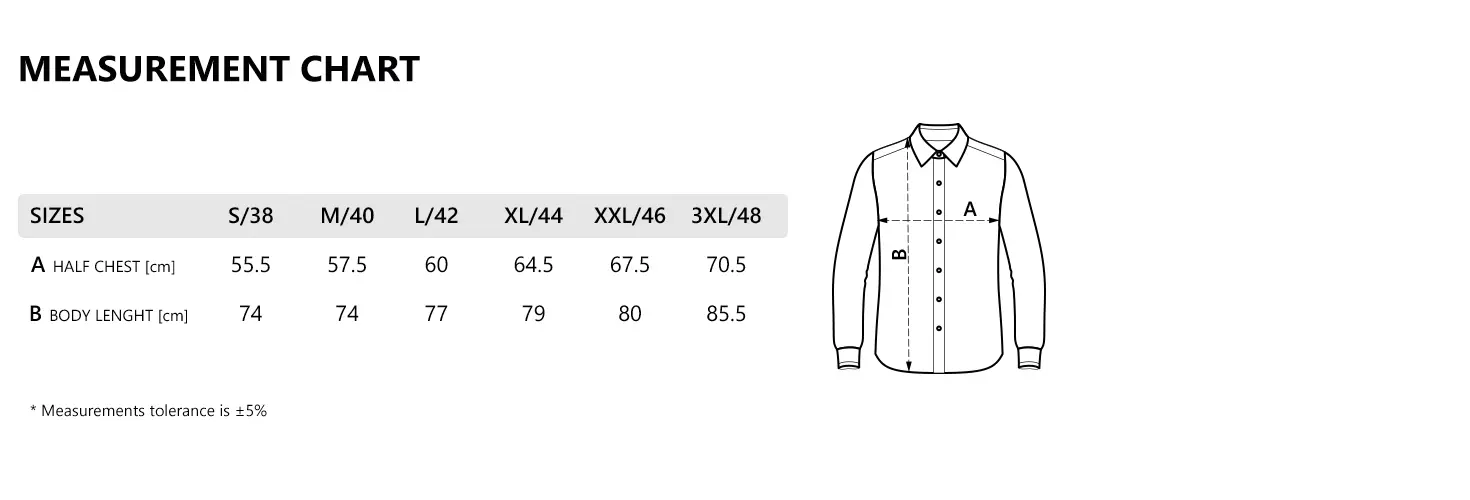 Veličine: S (36), M (38), L (40), XL (42), XXL (44) Tkanina: oksford, 125 g/m2 Sastav: 55% pamuk, 45% COOL MAX tkanje Muška verzija: GRANT LSL 55.048 Pakovanje: 20/1 Preporučena štampa: sito, preslikač, vez