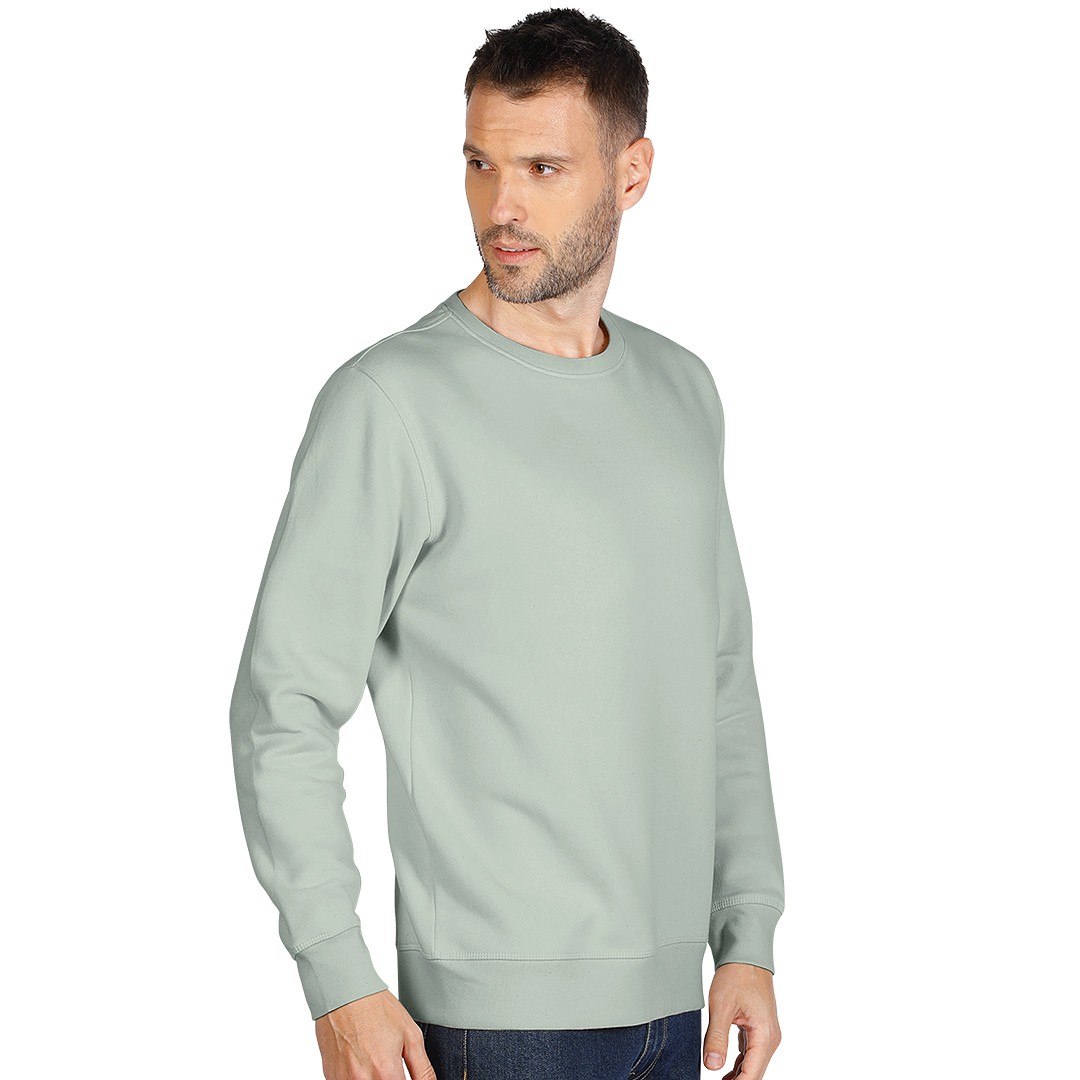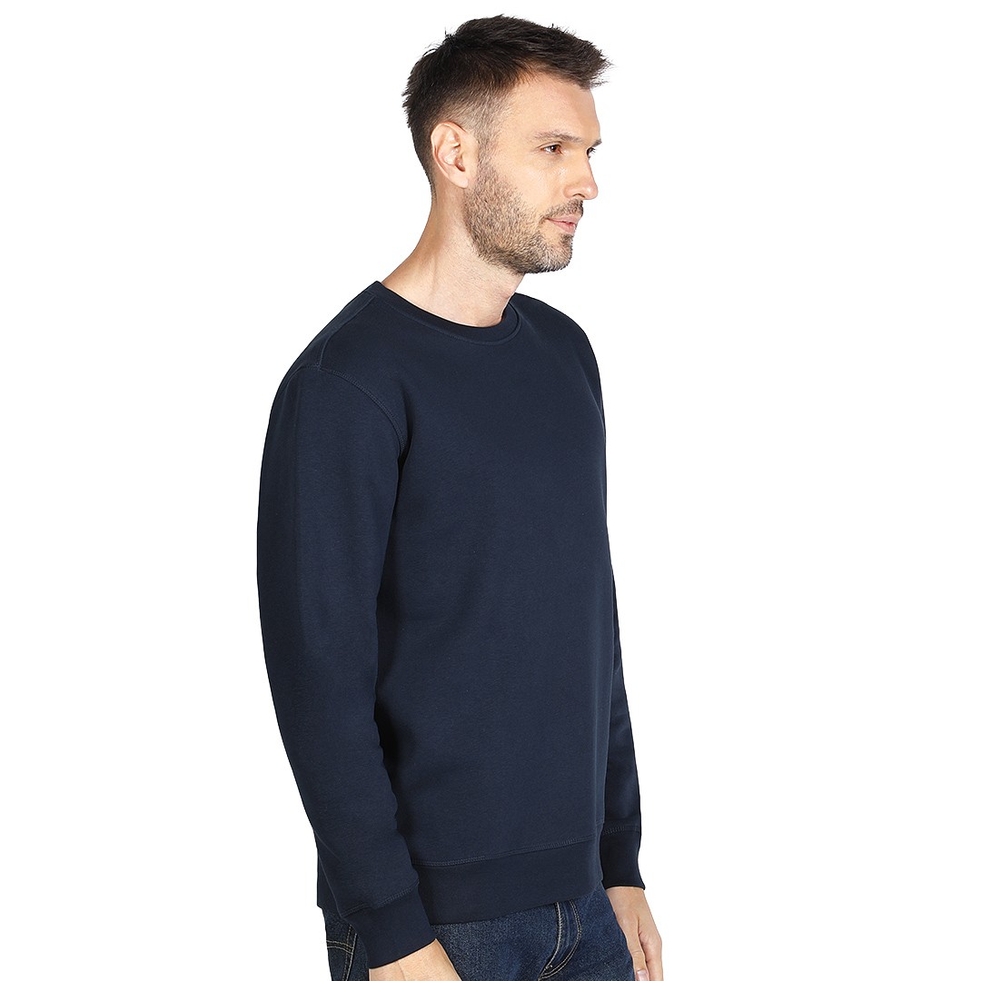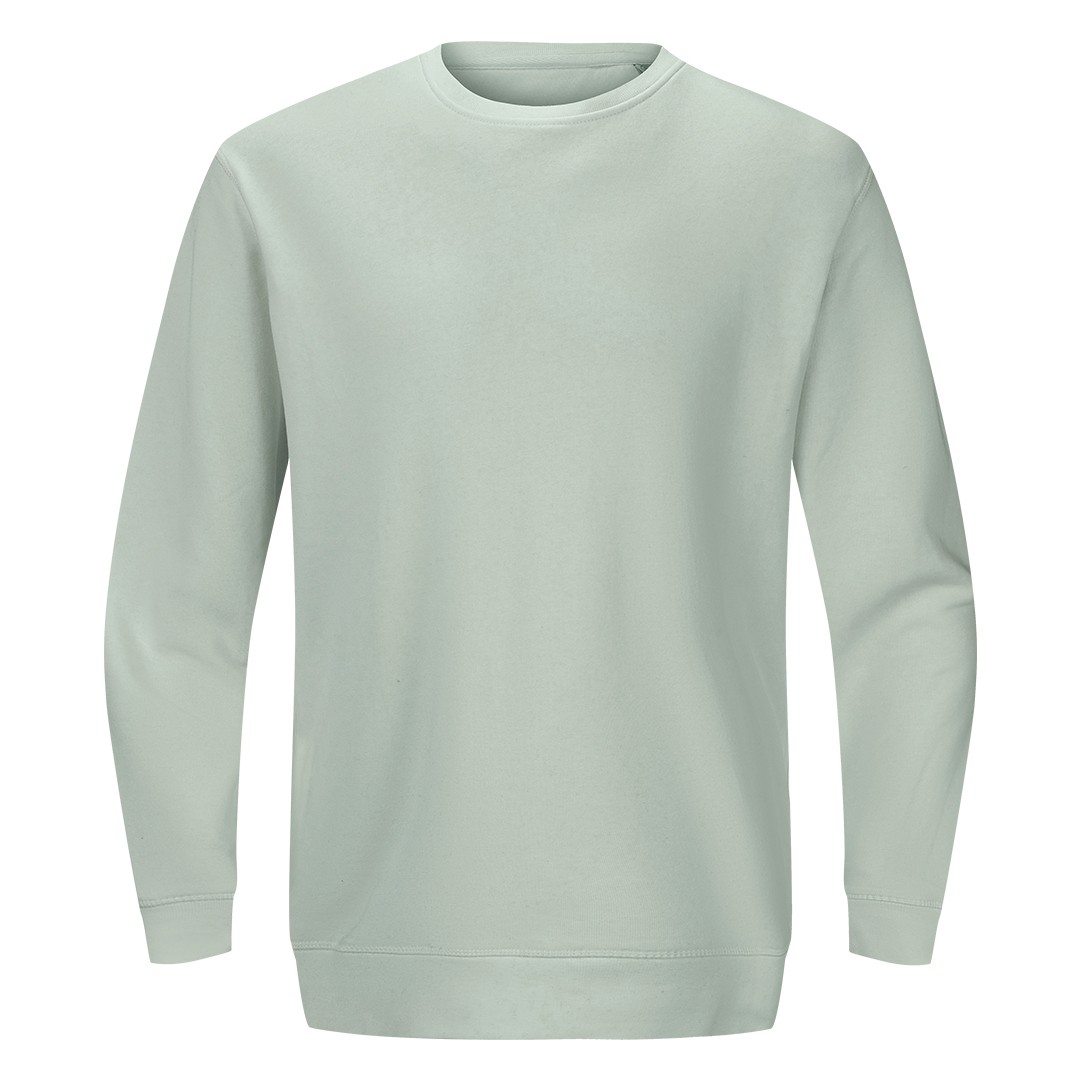 Dukserica od organskog pamuka, elastične ranfle oko vrata, na rukavima i dnu, okovratnik ojačan trakom, dodatni štepovi na okovratniku, rukavima, ramenima i dnu