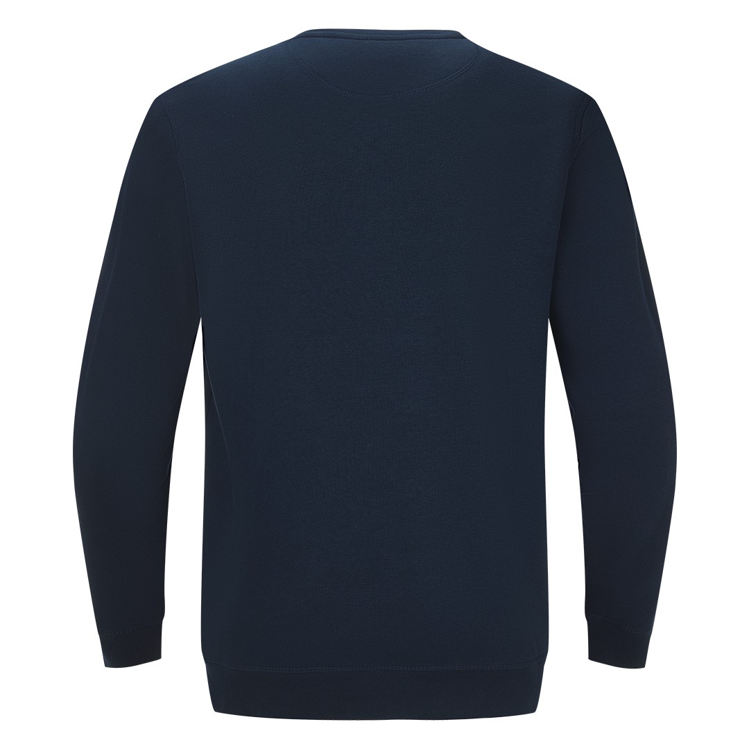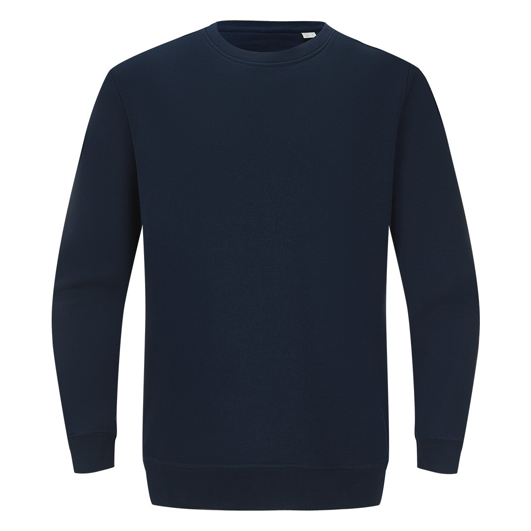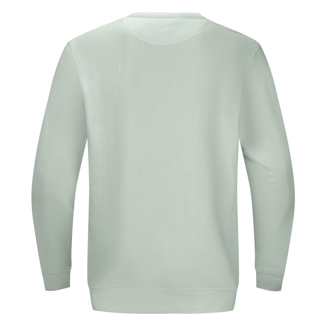 Dukserica od organskog pamuka, elastične ranfle oko vrata, na rukavima i dnu, okovratnik ojačan trakom, dodatni štepovi na okovratniku, rukavima, ramenima i dnu