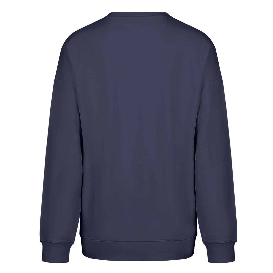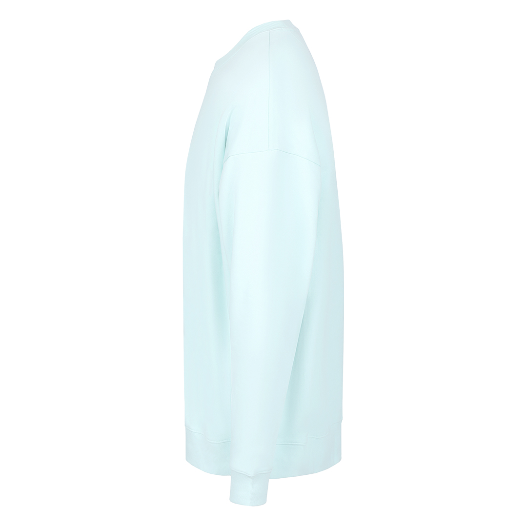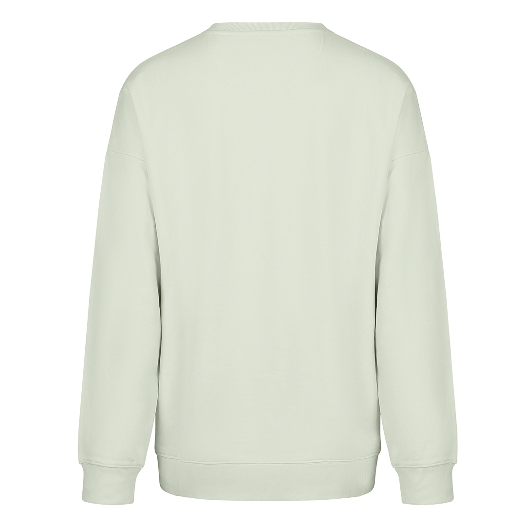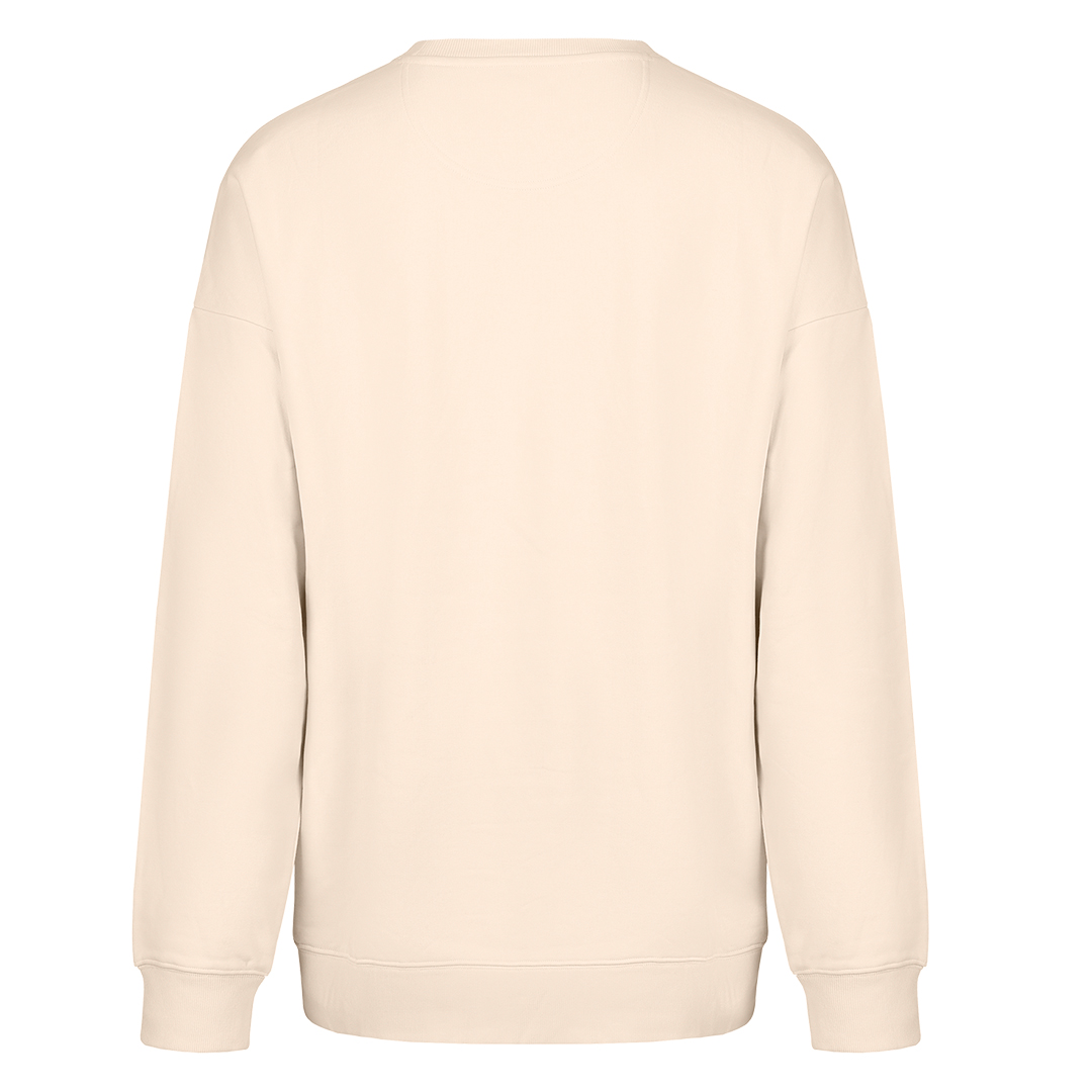 Široka dukserica od organskog pamuka, okrugli izrez, elastične ranfle oko vrata, na rukavima i dnu, okovratnik ojačan trakom, dodatni štepovi na okovratniku, rukavima, ramenima i dnu, troslojni flis