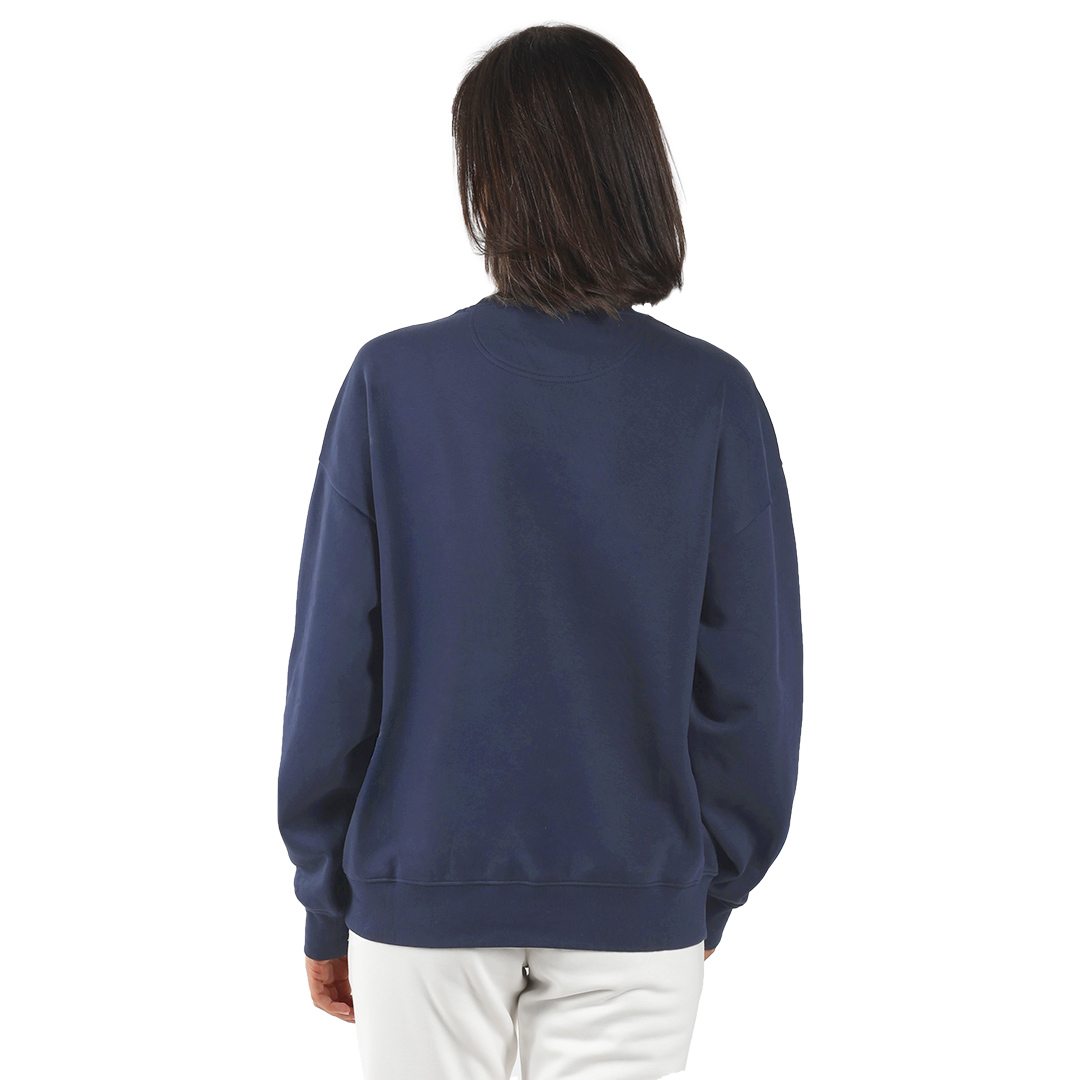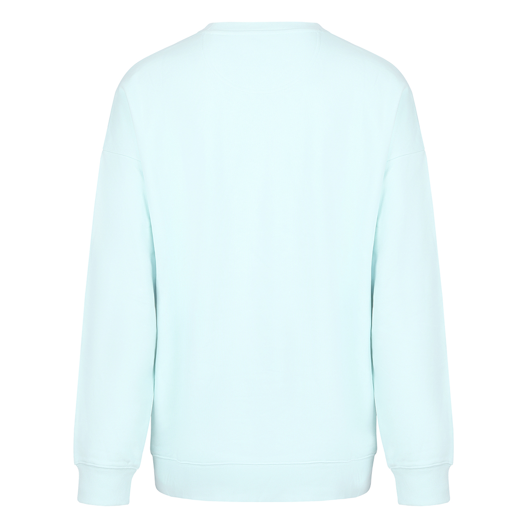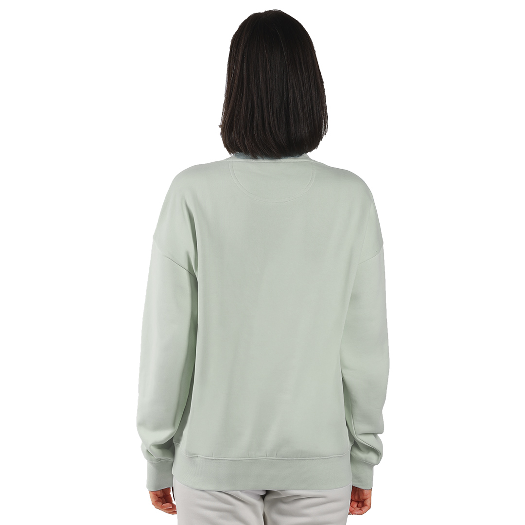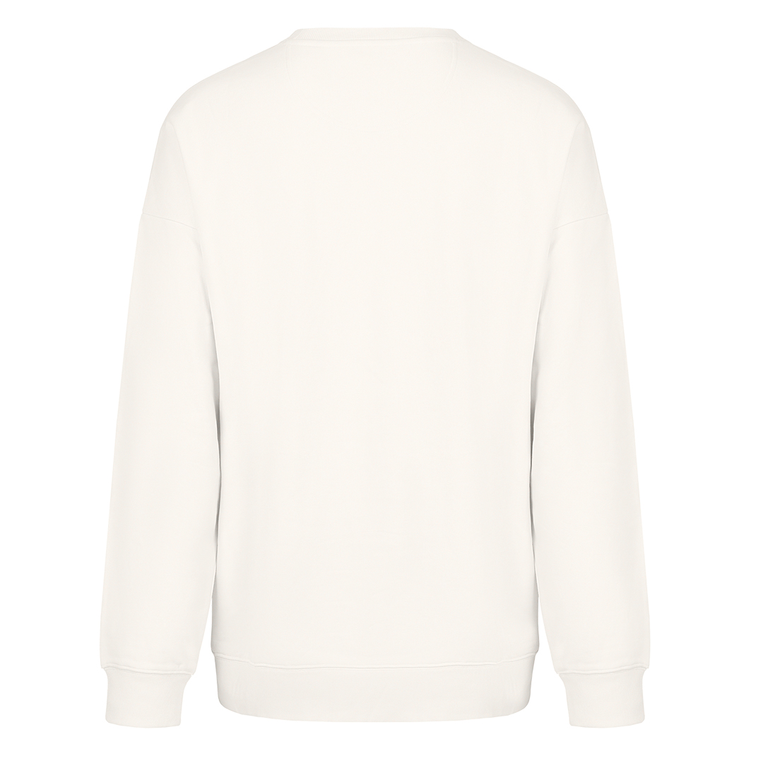 Široka dukserica od organskog pamuka, okrugli izrez, elastične ranfle oko vrata, na rukavima i dnu, okovratnik ojačan trakom, dodatni štepovi na okovratniku, rukavima, ramenima i dnu, troslojni flis