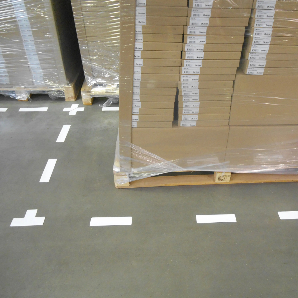 Za sigurno i trajno obeležavanje u unutrašnjem radnom prostoru. Otporni na habanje od sredstava unutrašnjeg transporta. Debljina 350my.