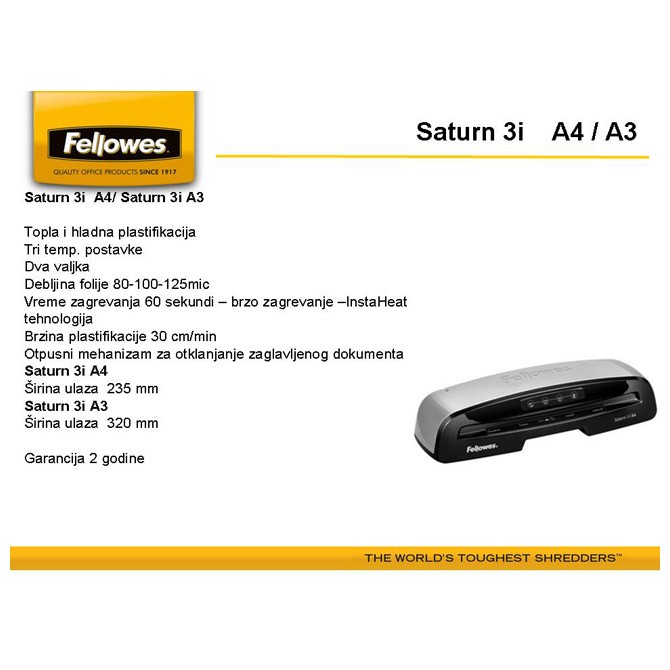 Plastifikator A3 (2valjka) Saturn 3i Fellowes 5736001