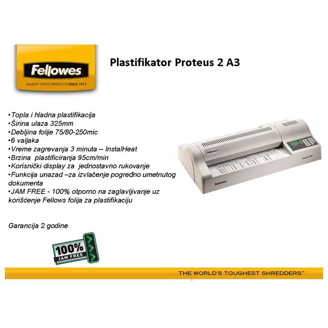 Treba ti Plastifikator A3 (6valjaka) Proteus Fellowes 5709001? U Arhimed online prodavnici te čekaju LAMINATORI odličnog kvaliteta. Pogledaj online!