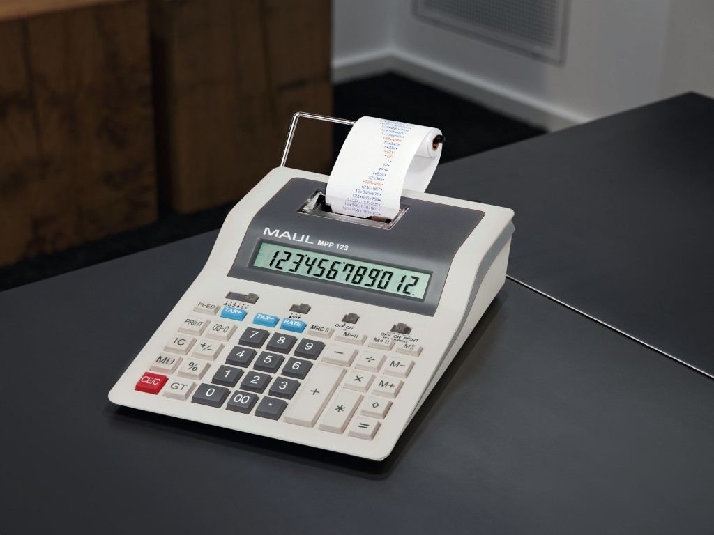 Računska mašina: 12-cifreni displej, 4 memorijska tastera: MC, MR, M+, M-, dvostruka memorija [MII], štampa u 2 boje: plava i crvena; brzina štampanja: 2.0 reda/sek., 58 mm rolna papira, promena [+/-], rocenat [%], dvostruka nula [00], obračun poreza [TAKS], određivanje cene [MU], birač zaokruživanja, decimalni birač, broj stavki [IC], ukupan iznos [GT], izbriši. Napajanje: mrežno.