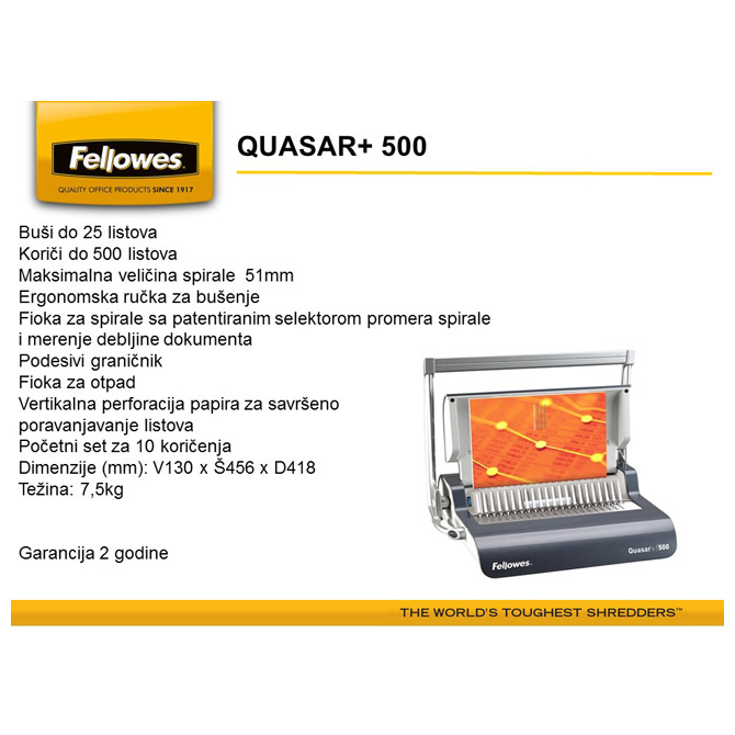 Treba ti Mašina za spiralno koričenje Quasar+ Fellowes 5627701? U Arhimed online prodavnici te čekaju SPIRALE I KORICE ZA KORIČENJE odličnog kvaliteta. Pogledaj online!