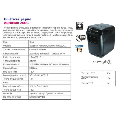 Uništivač dokumentacije AutoMax (konfete) 200C Fellowes 4653602